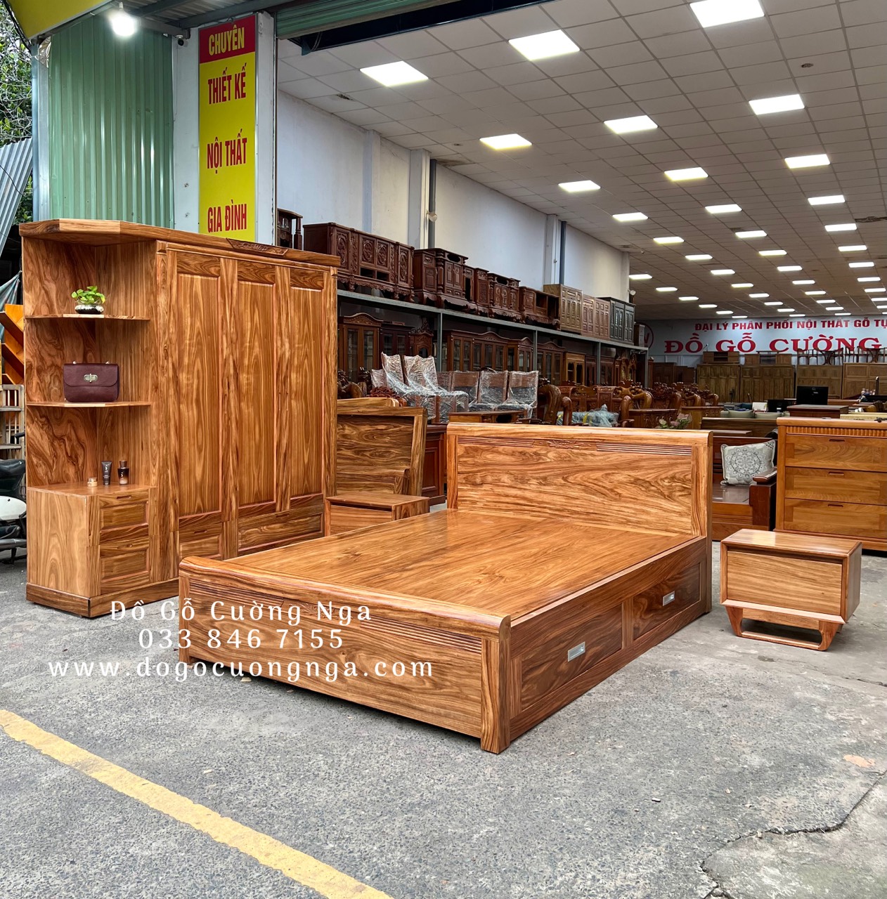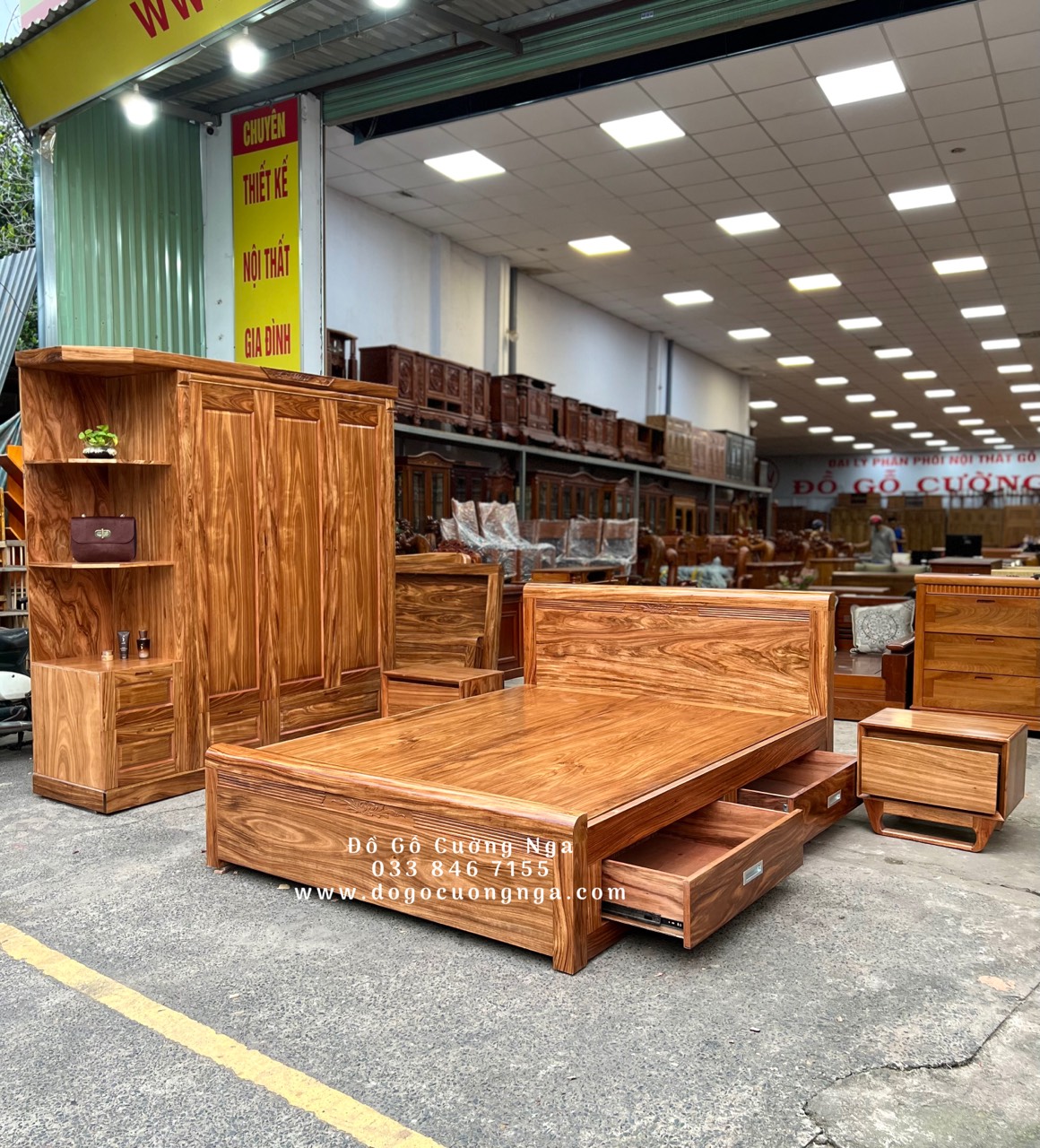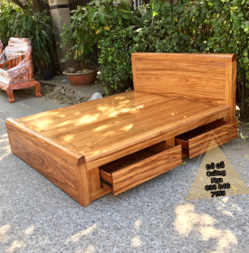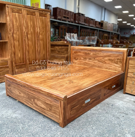 Video thực tế giường gỗ hương xám - 2 ngăn kéo