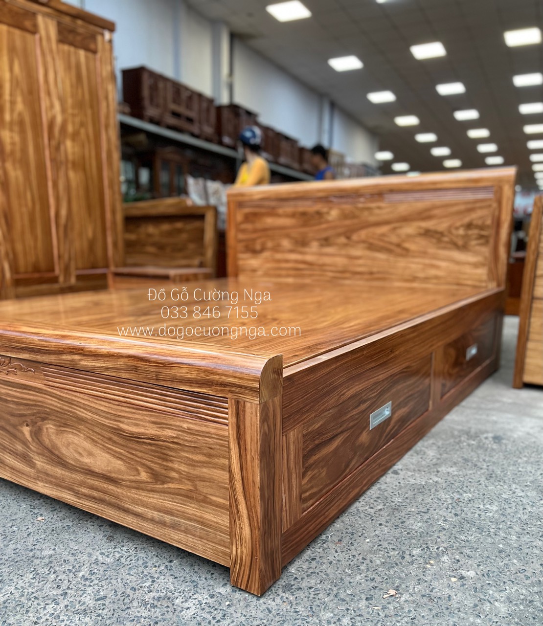 Chi tiết giường ô kéo gỗ hương xám hiện đại