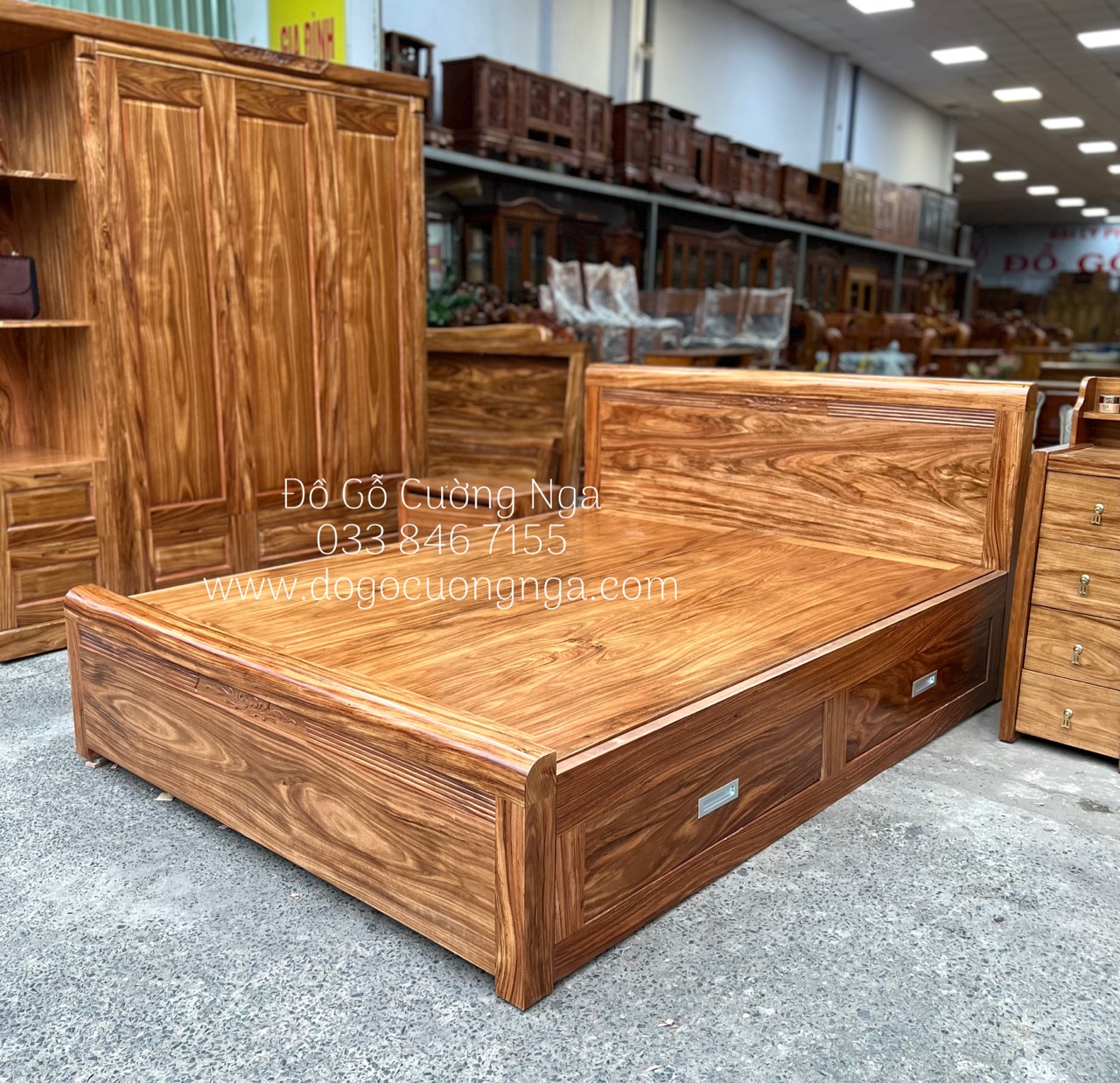 Giường gỗ hương xám 2 ngăn kéo hiện đại