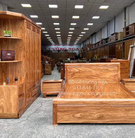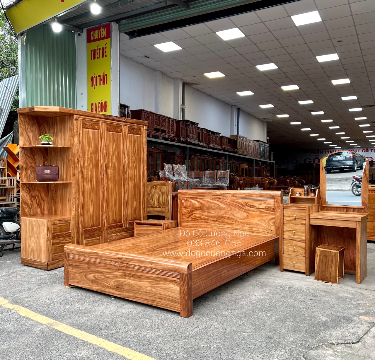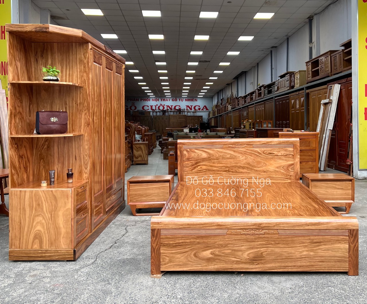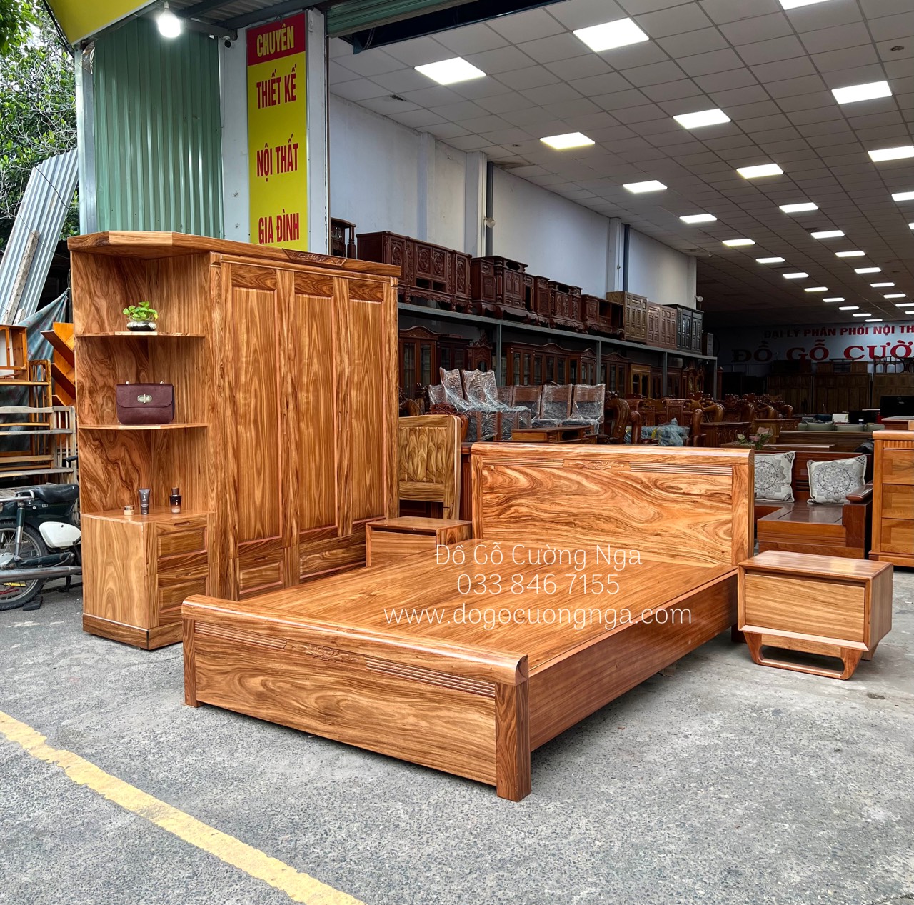 Chi tiết bộ phòng ngủ gỗ hương xám kết hợp