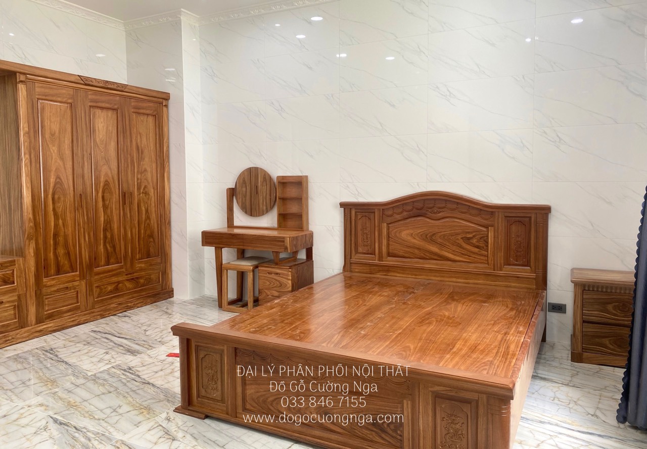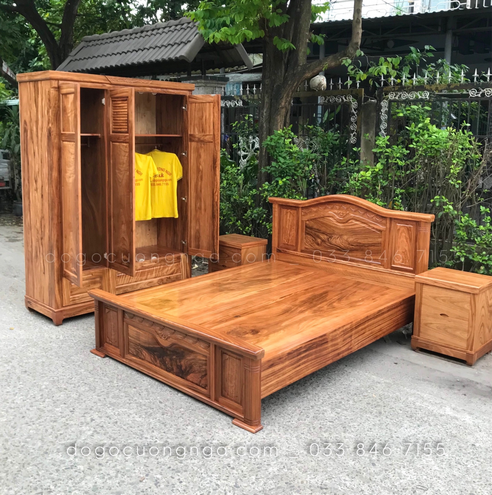 Giường gỗ hương xám kết hợp chọn bộ phòng ngủ