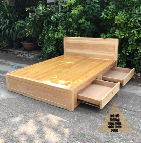 Giường ngủ gỗ sồi nga 2 ngăn kéo