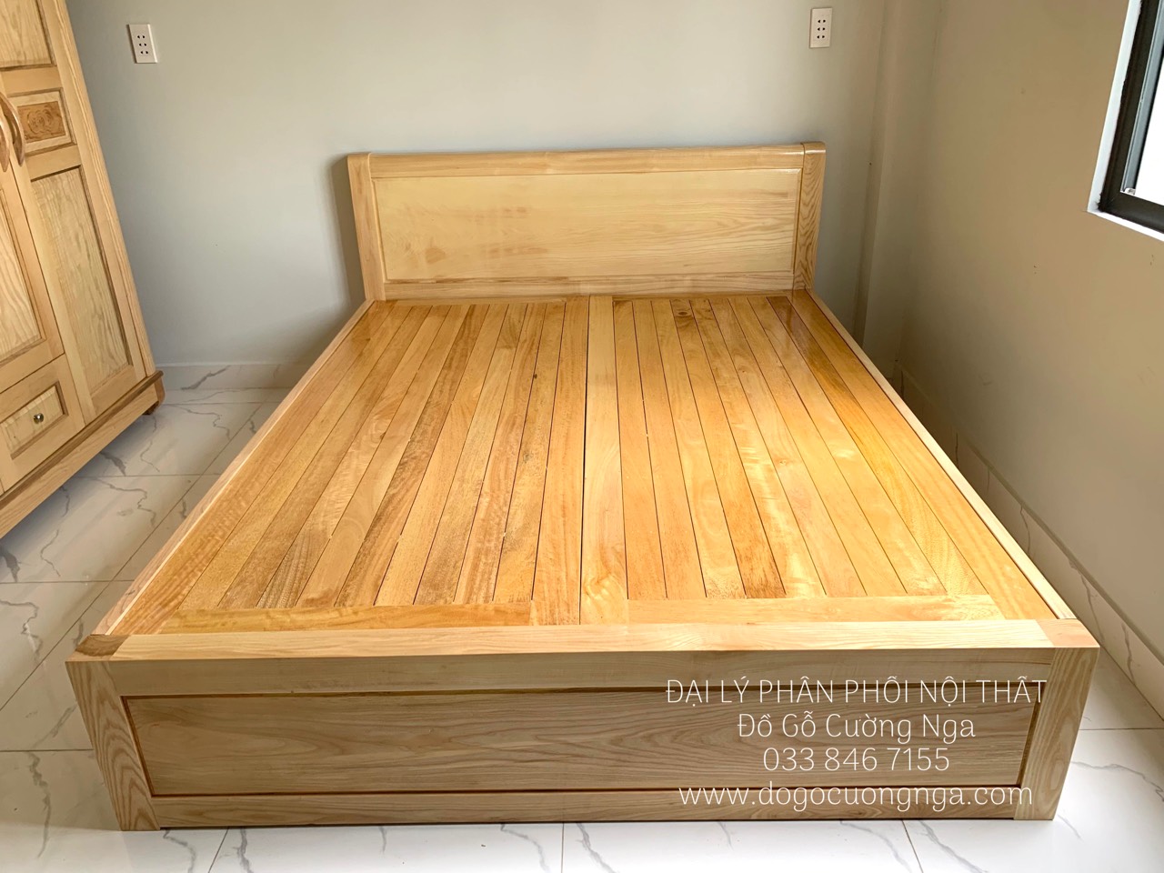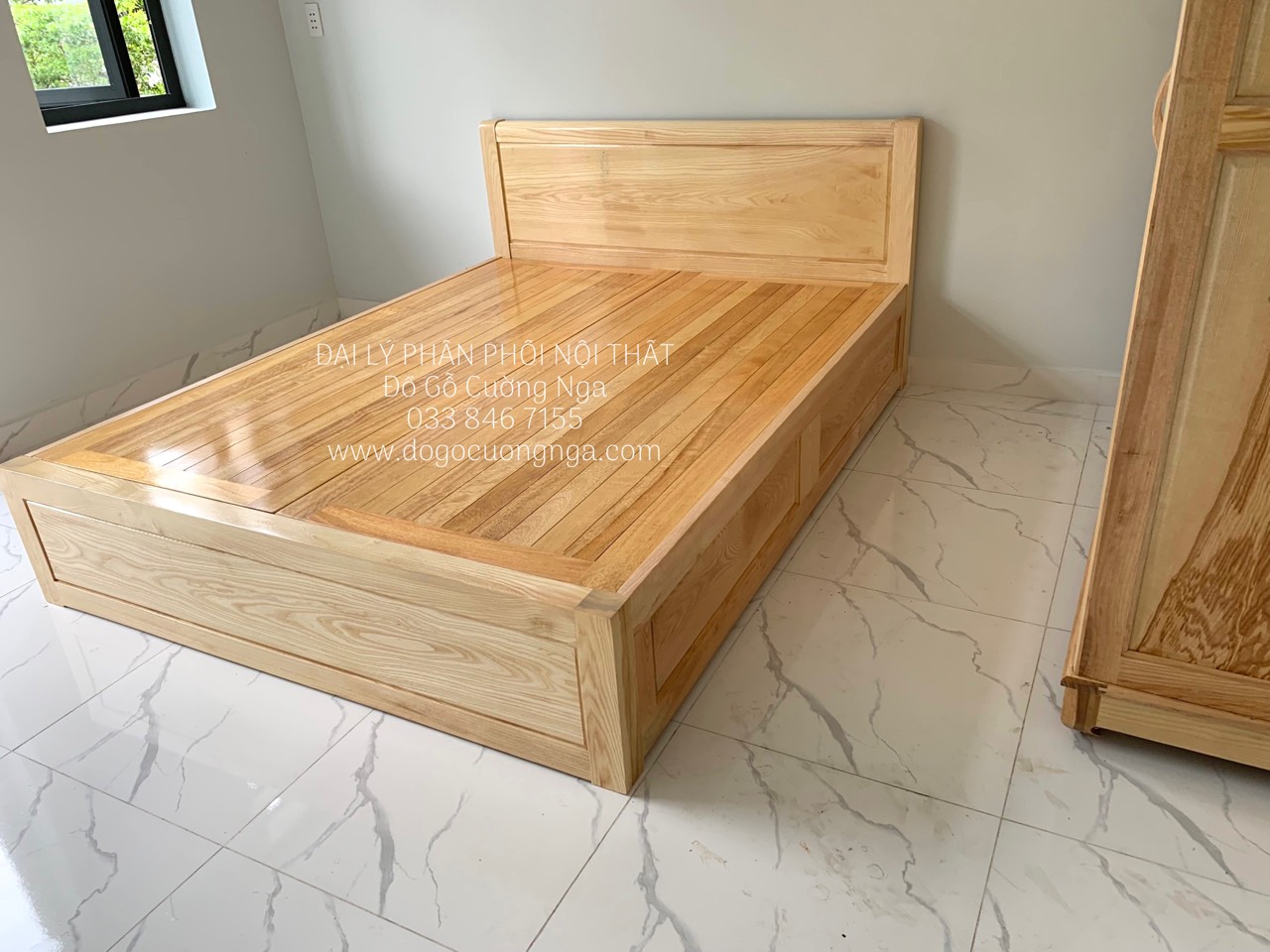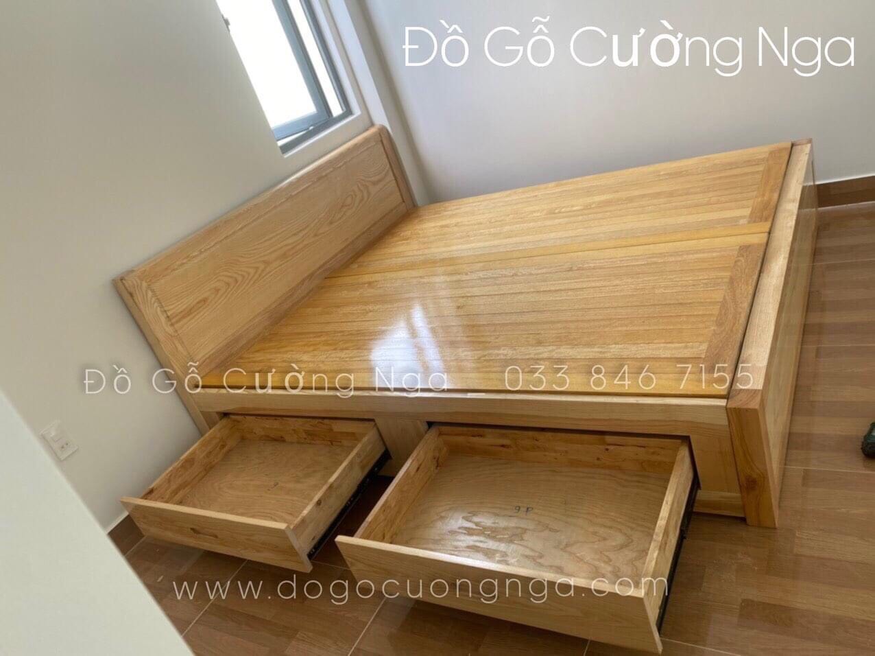 Giường gỗ sồi nga 2 ngăn kéo mẫu trơn - vạt phản