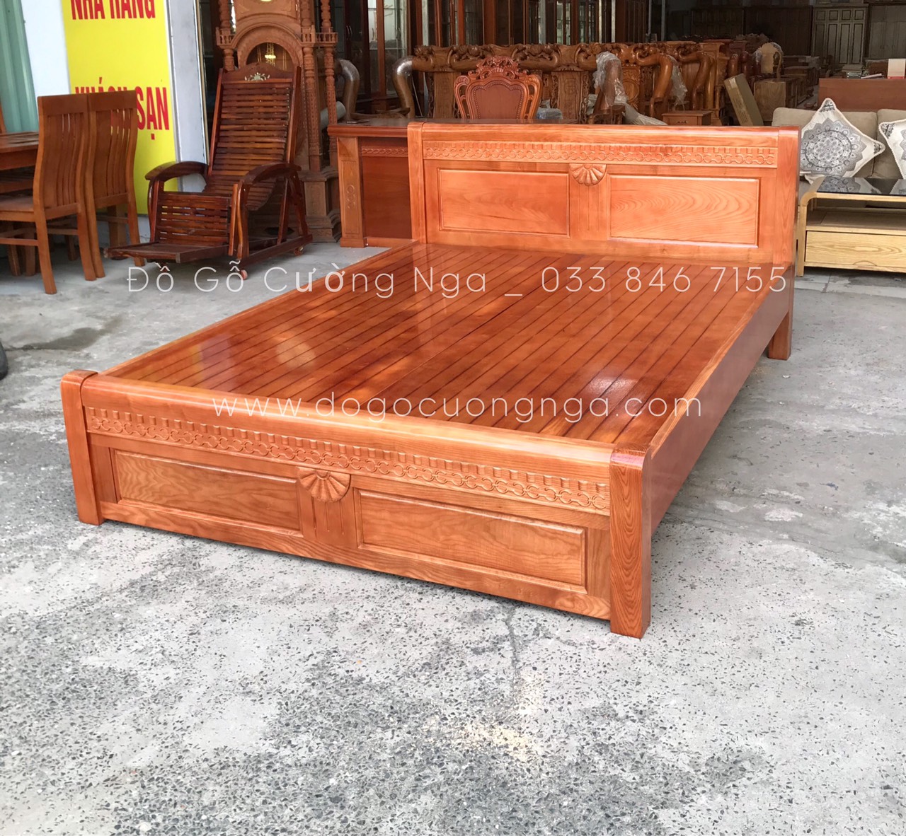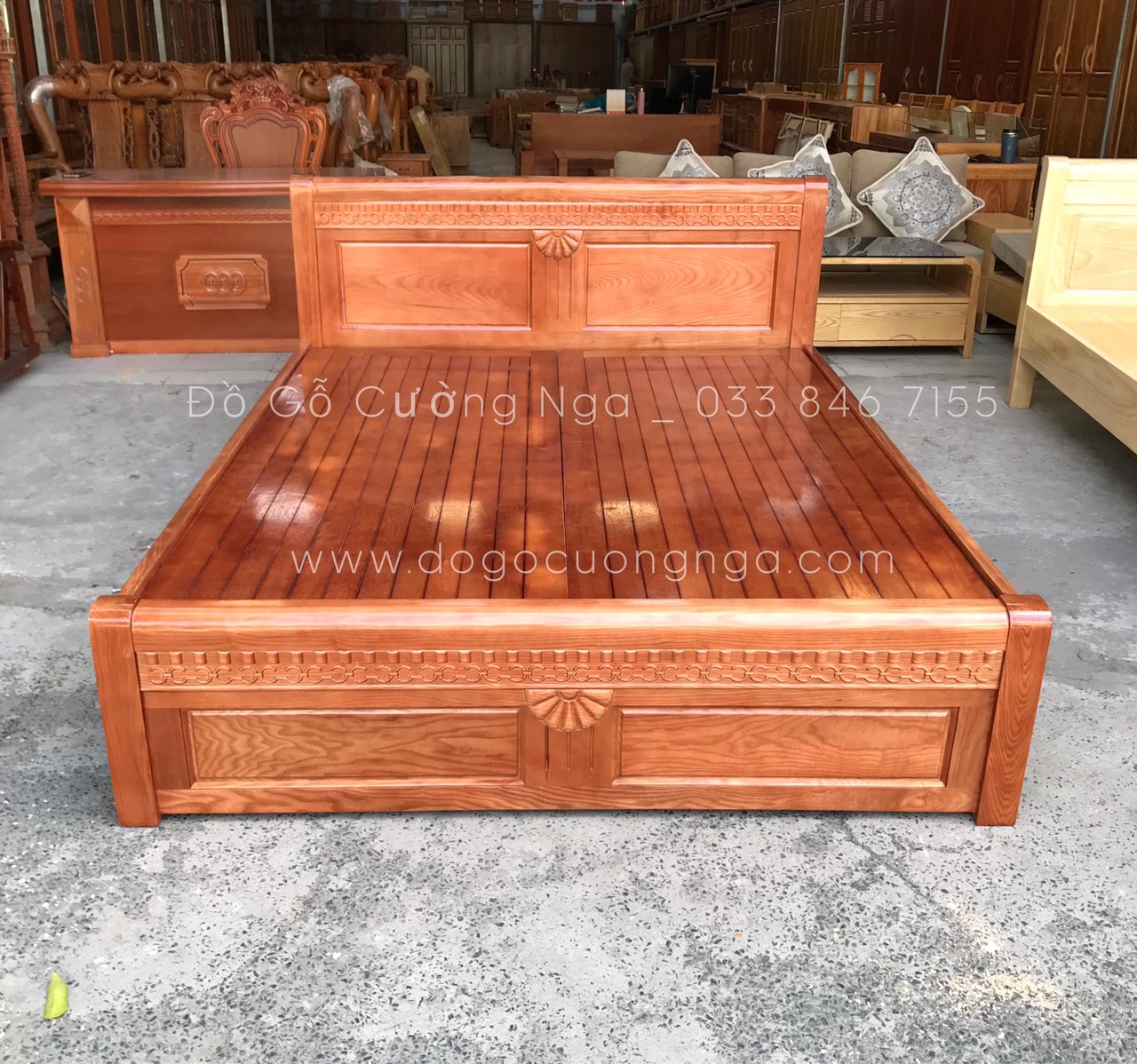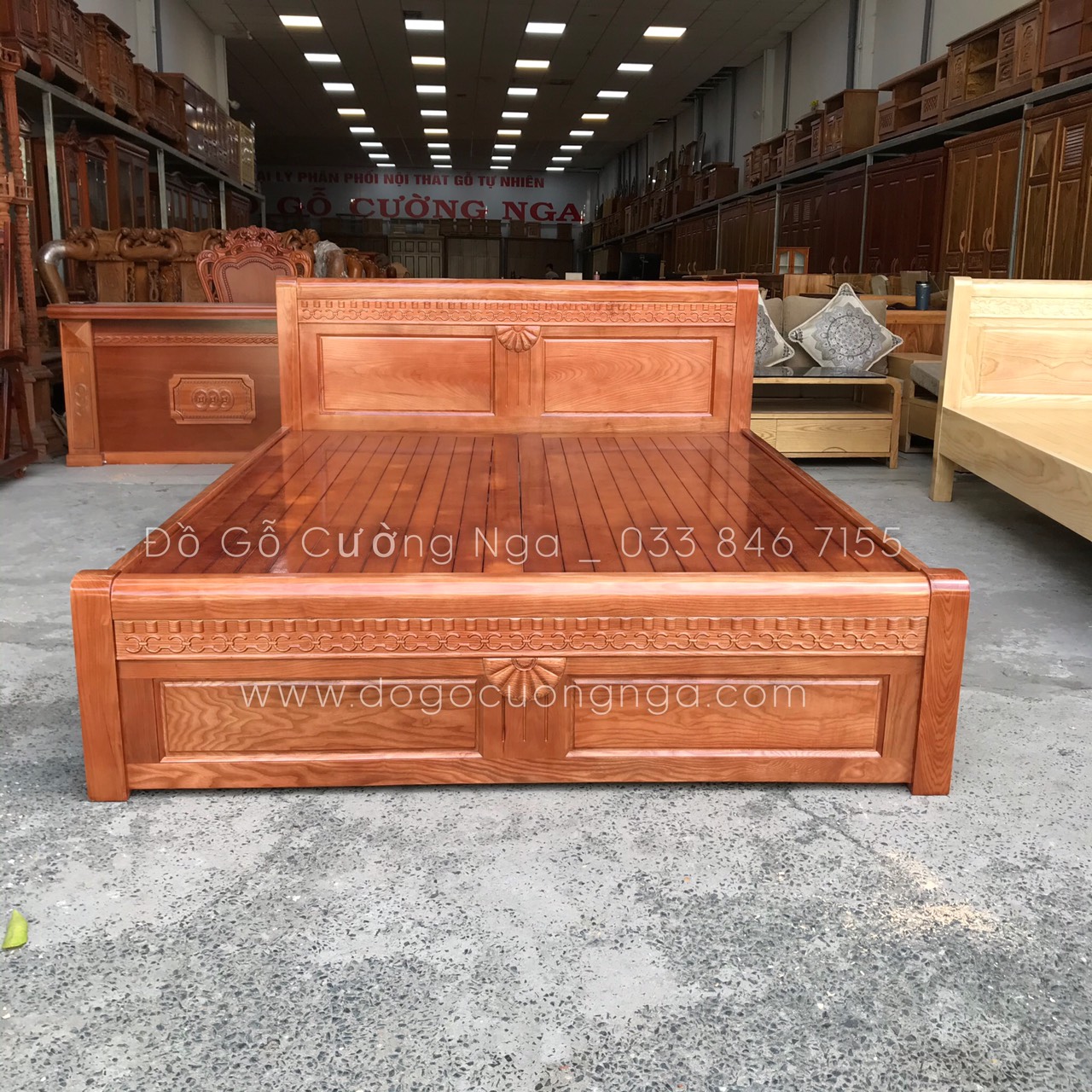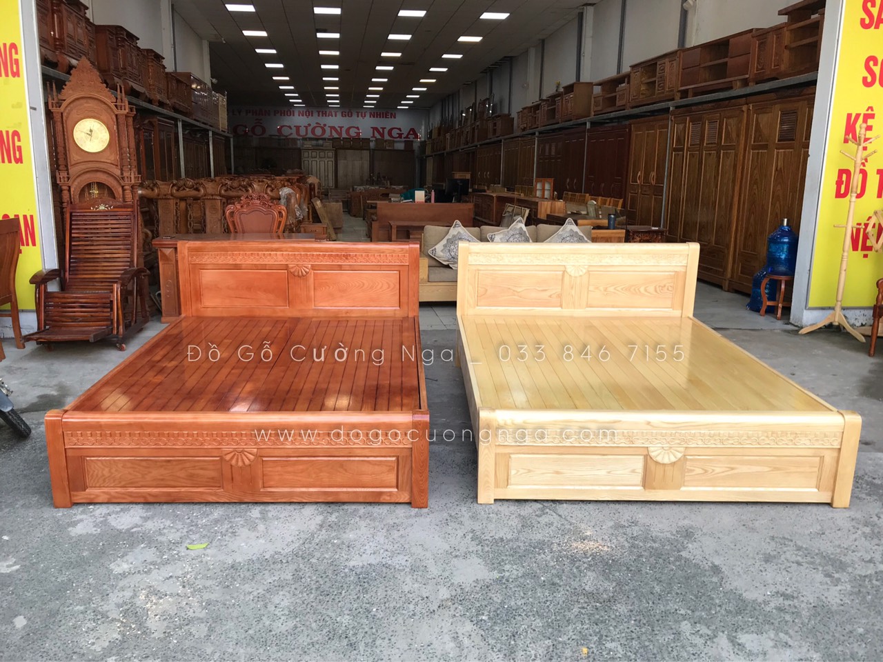 Giường Ngủ Gỗ Sồi Nga Trạm Khắc Nhẹ Nhàng Sang Trọng
