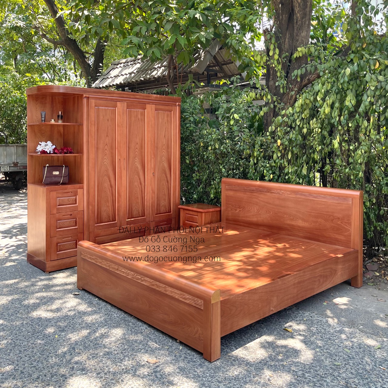 Giường ngủ gỗ xoan đào vạt phản liền cao cấp