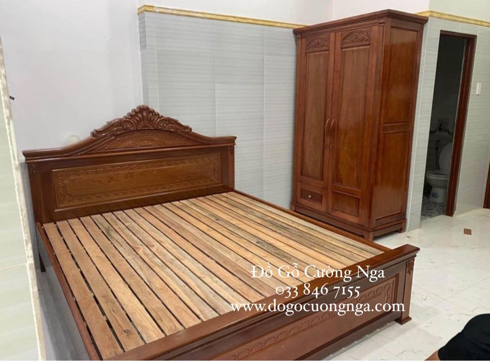 Chi tiết giường ngủ gỗ xoan đào vạt giá rẻ