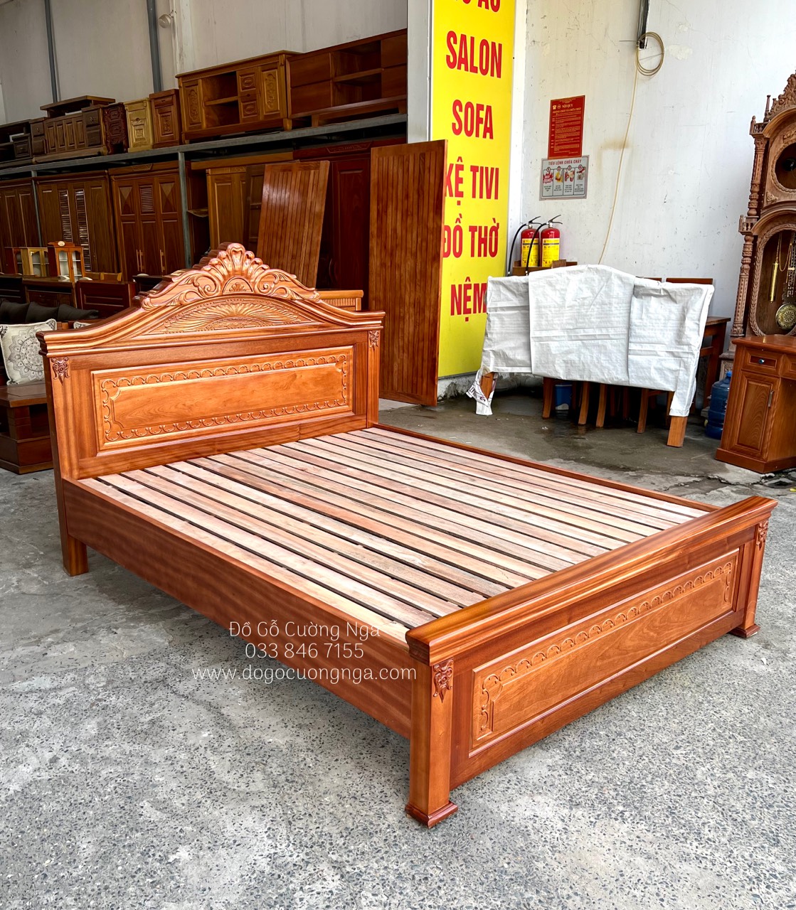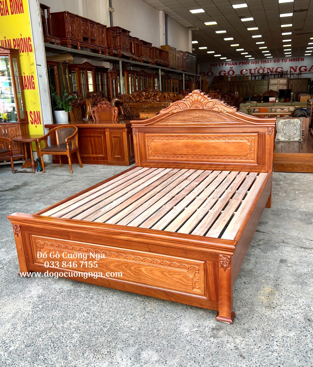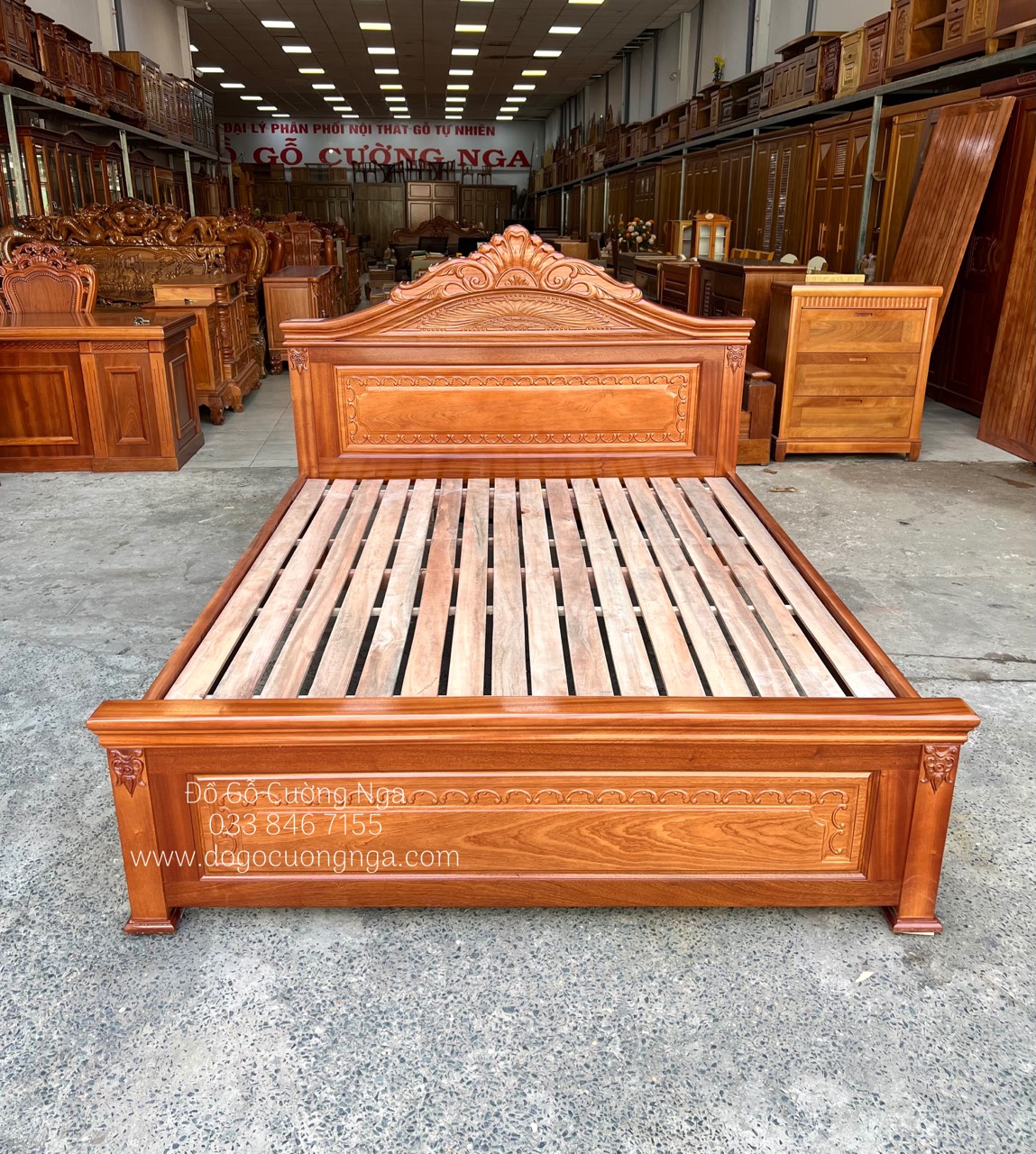 Giường gỗ xoan đào vạt lan - mẫu nữ hoàng
