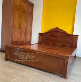 Giường nhiều kích thước khác nhau 1m6x2m và 1m8x2m, đường vân gỗ rõ ràng, màu sắc tươi sáng, bề mặt gỗ mịn, chạm khắc tinh tế, với đầu giường uốn lượn… Tạo điểm nhấn cho phòng ngủ ấm cúng, sang trọng, độc đáo.