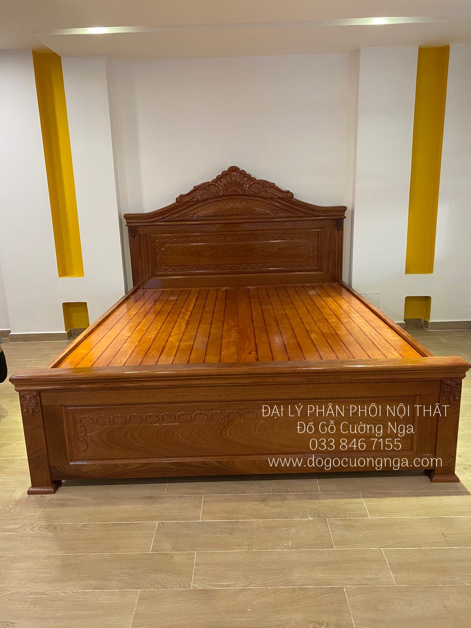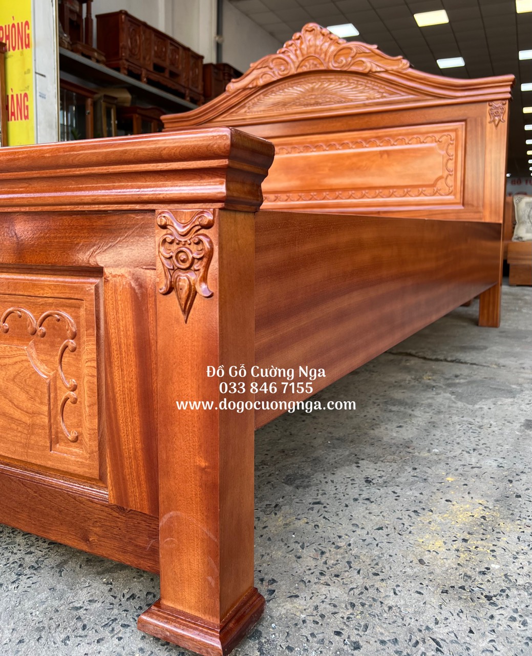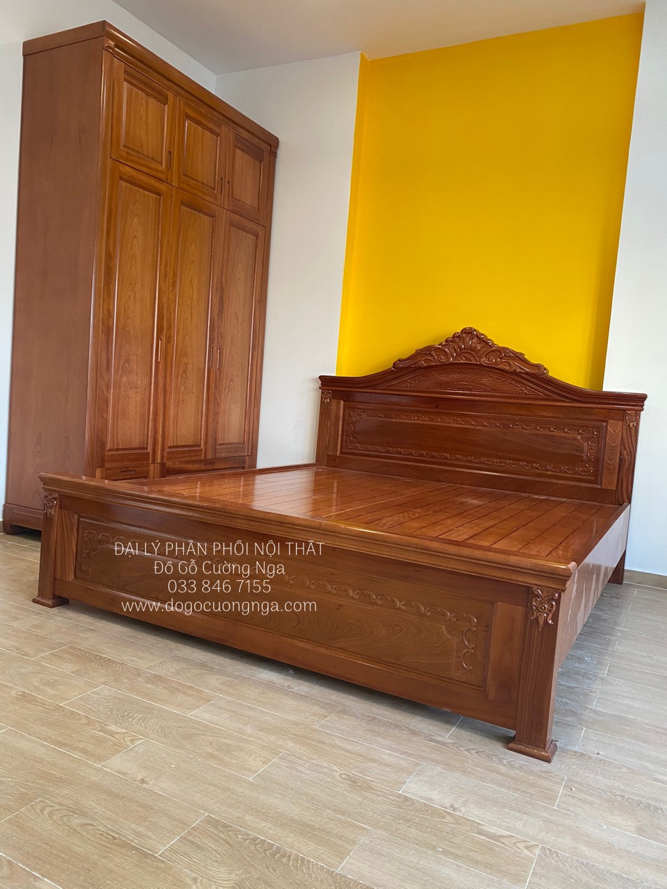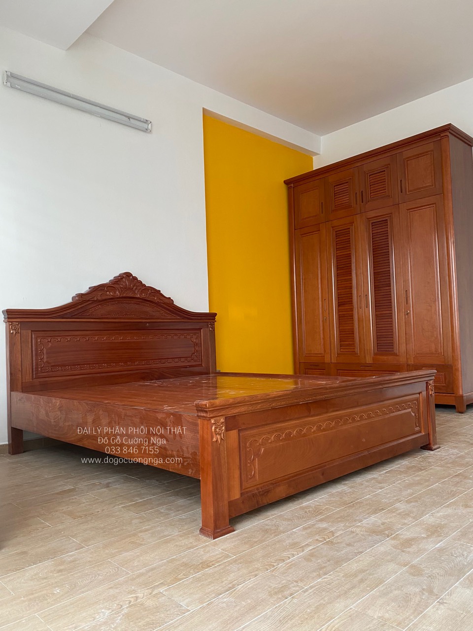 Chi tiết giường ngủ gỗ xoan đào giao khách