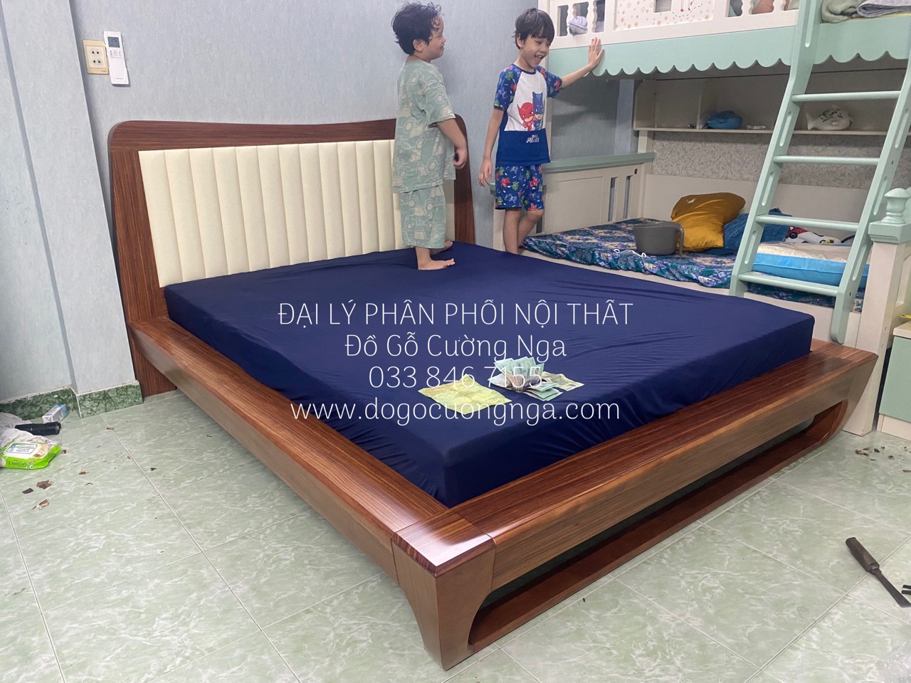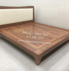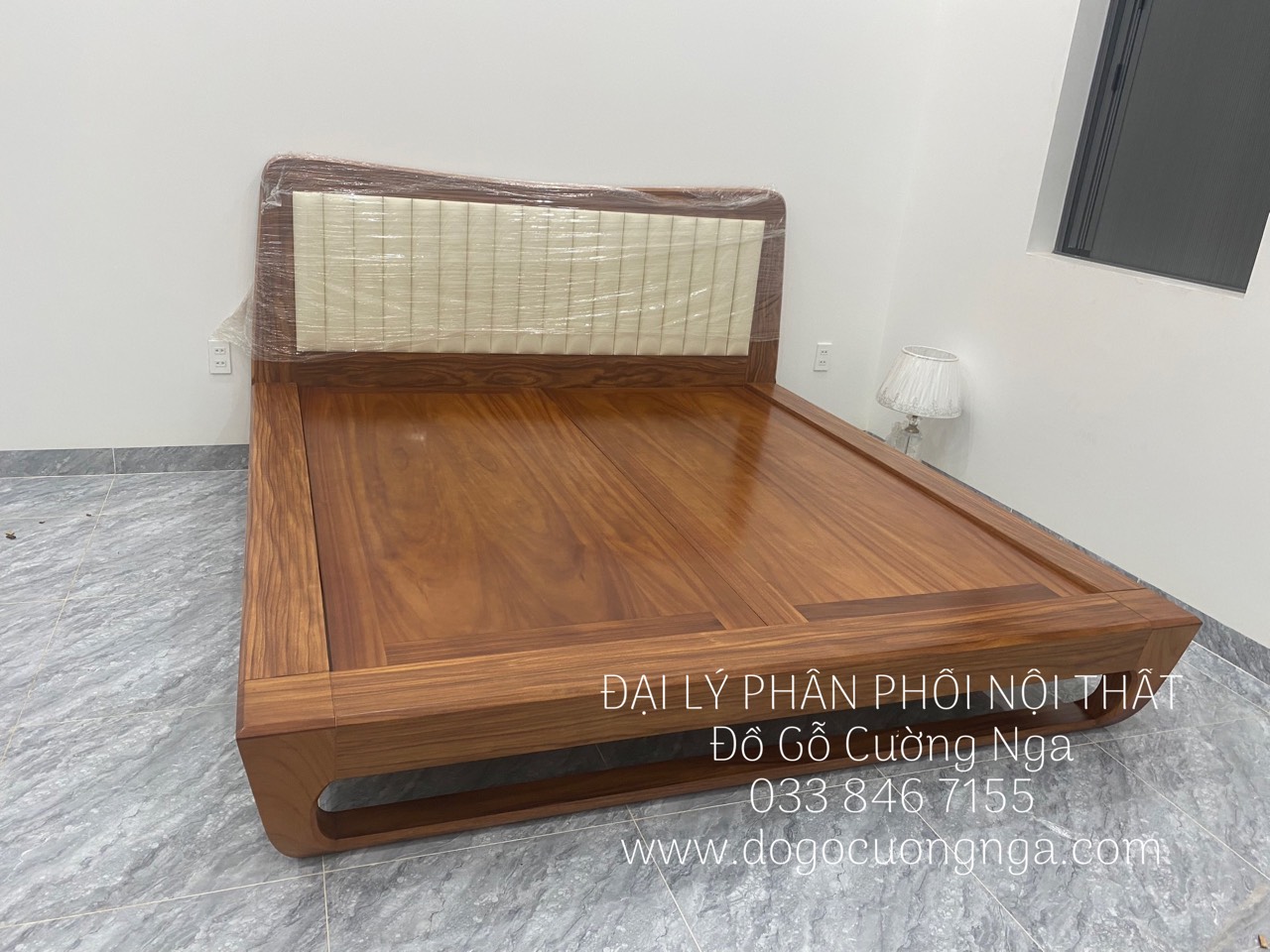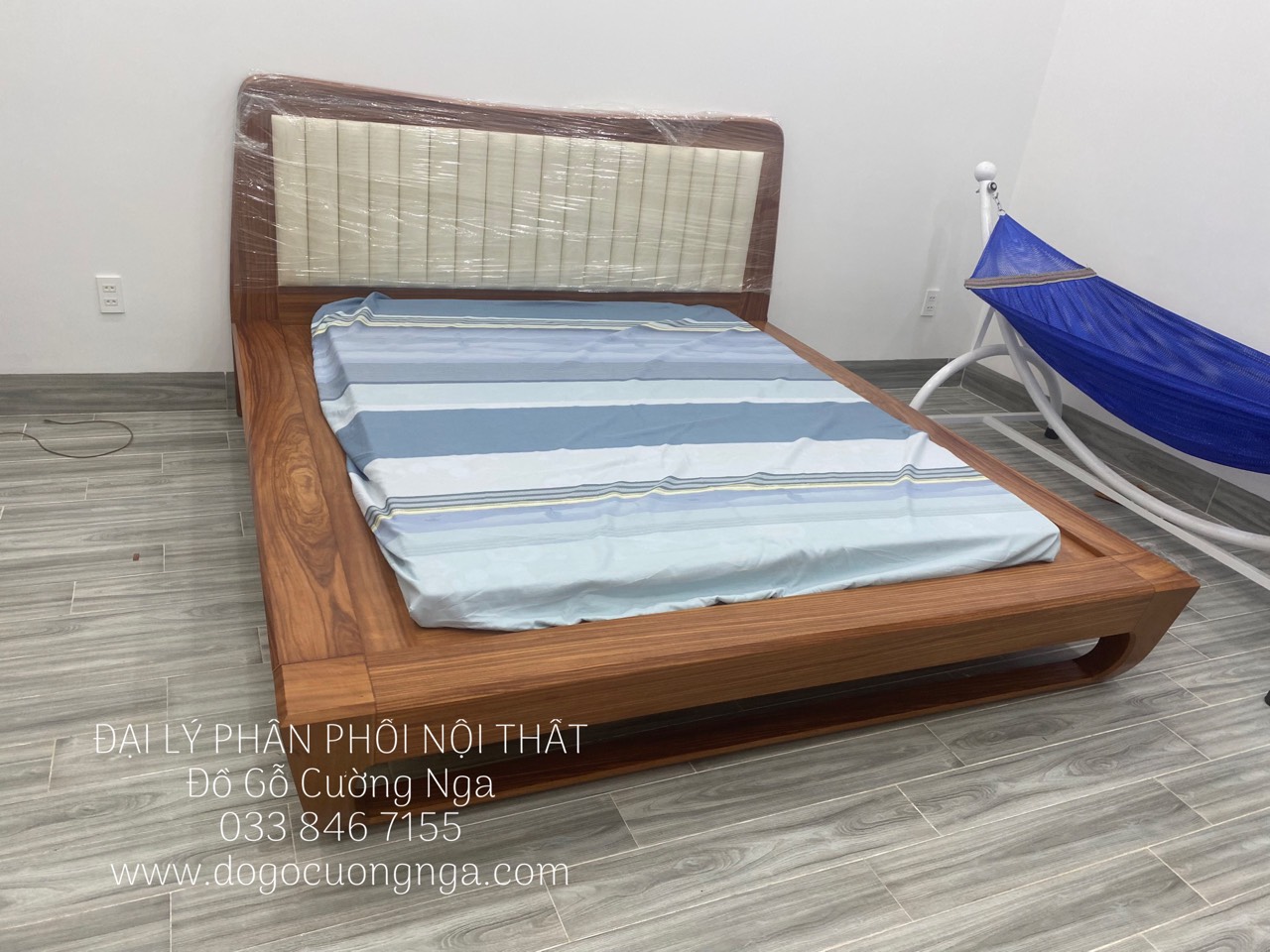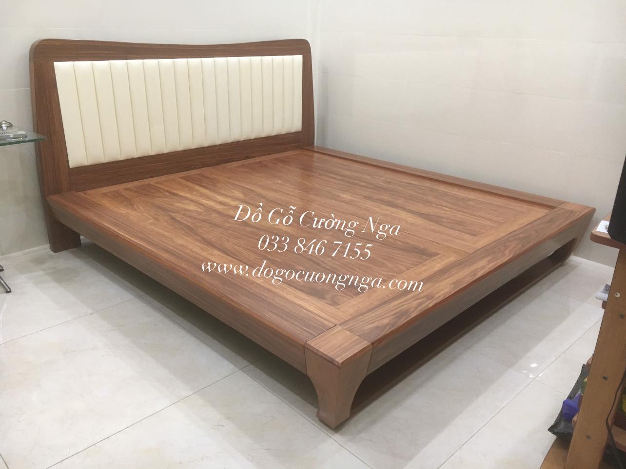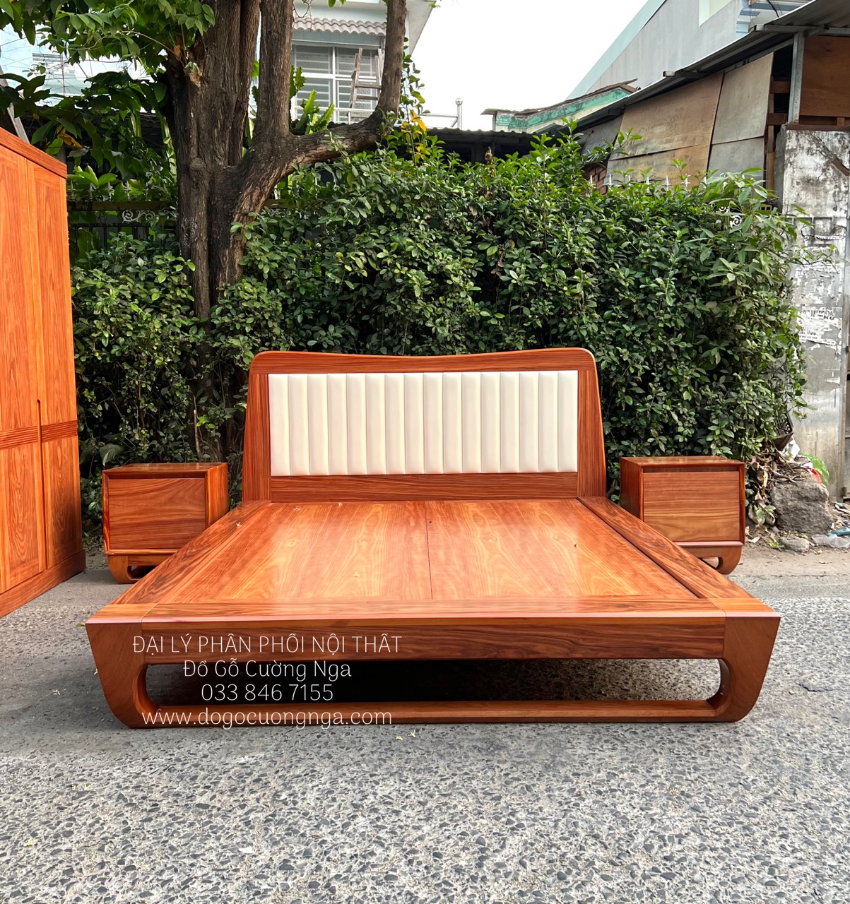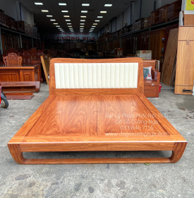 Giường ngủ gỗ cẩm kiểu nhật đầu bọc nệm hiện đại - chân quỳ