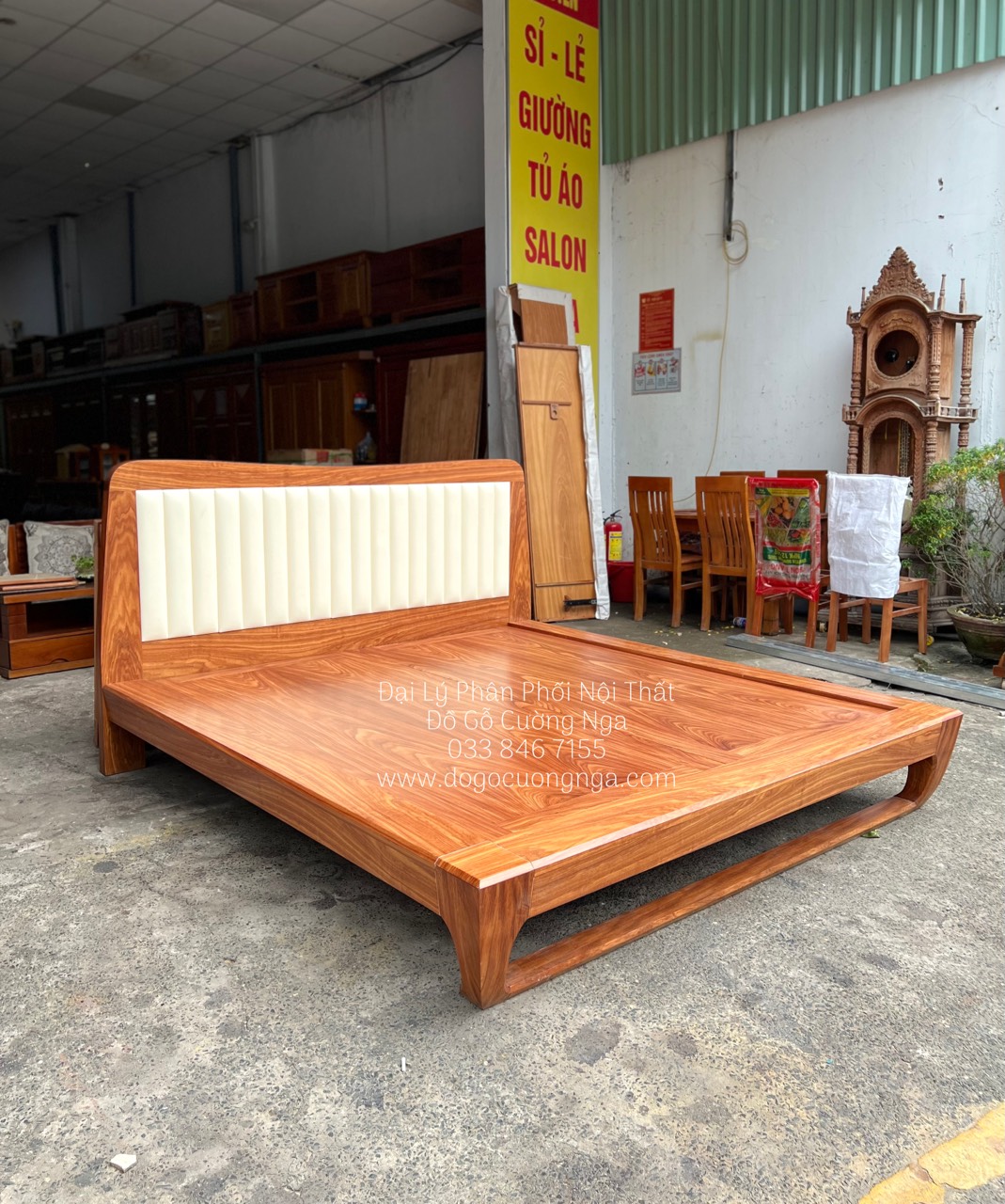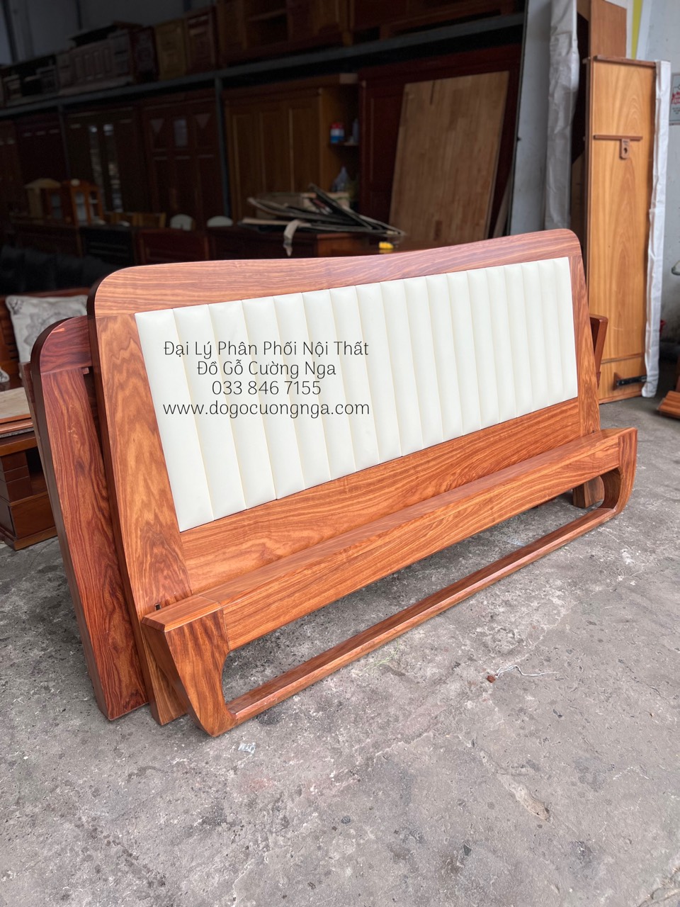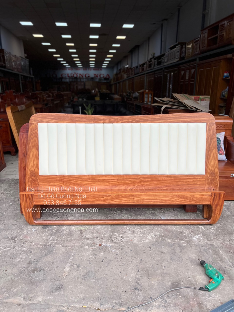 Giường gỗ cẩm kiểu hiện đại bọc nệm