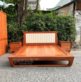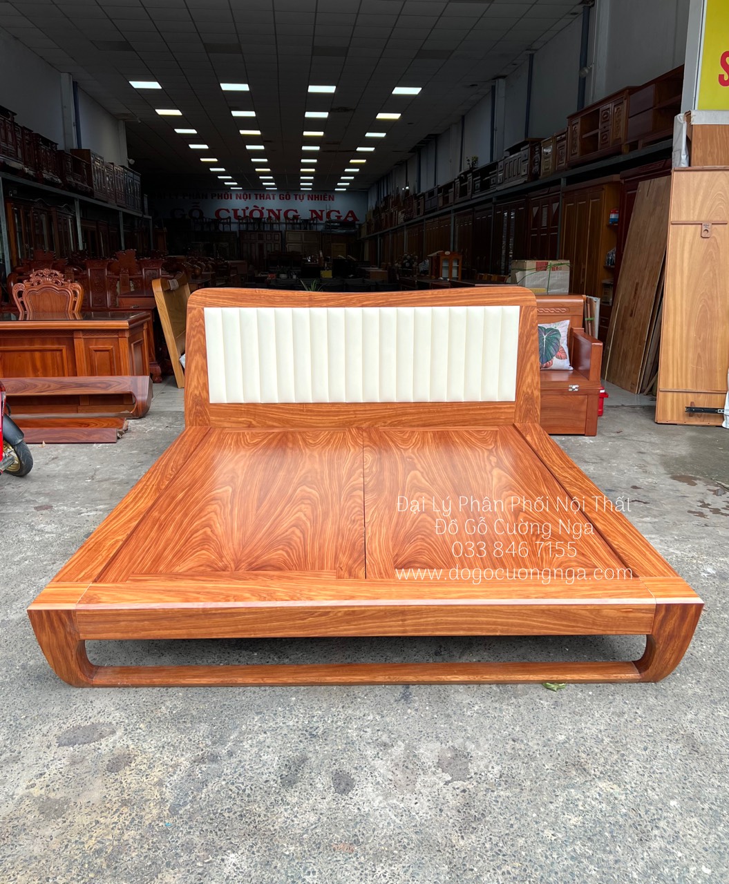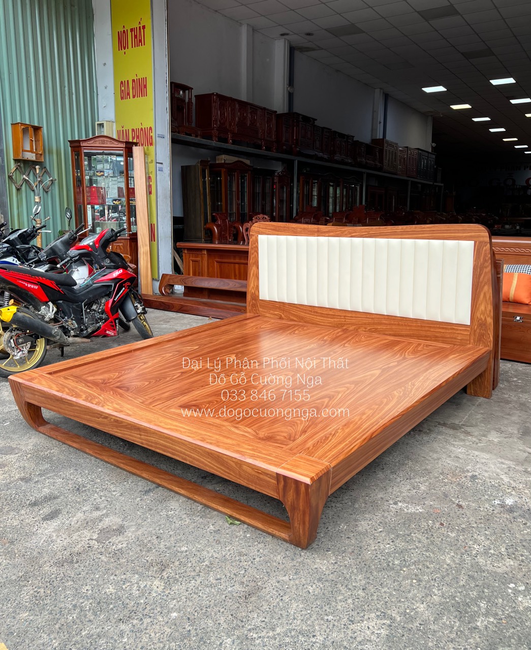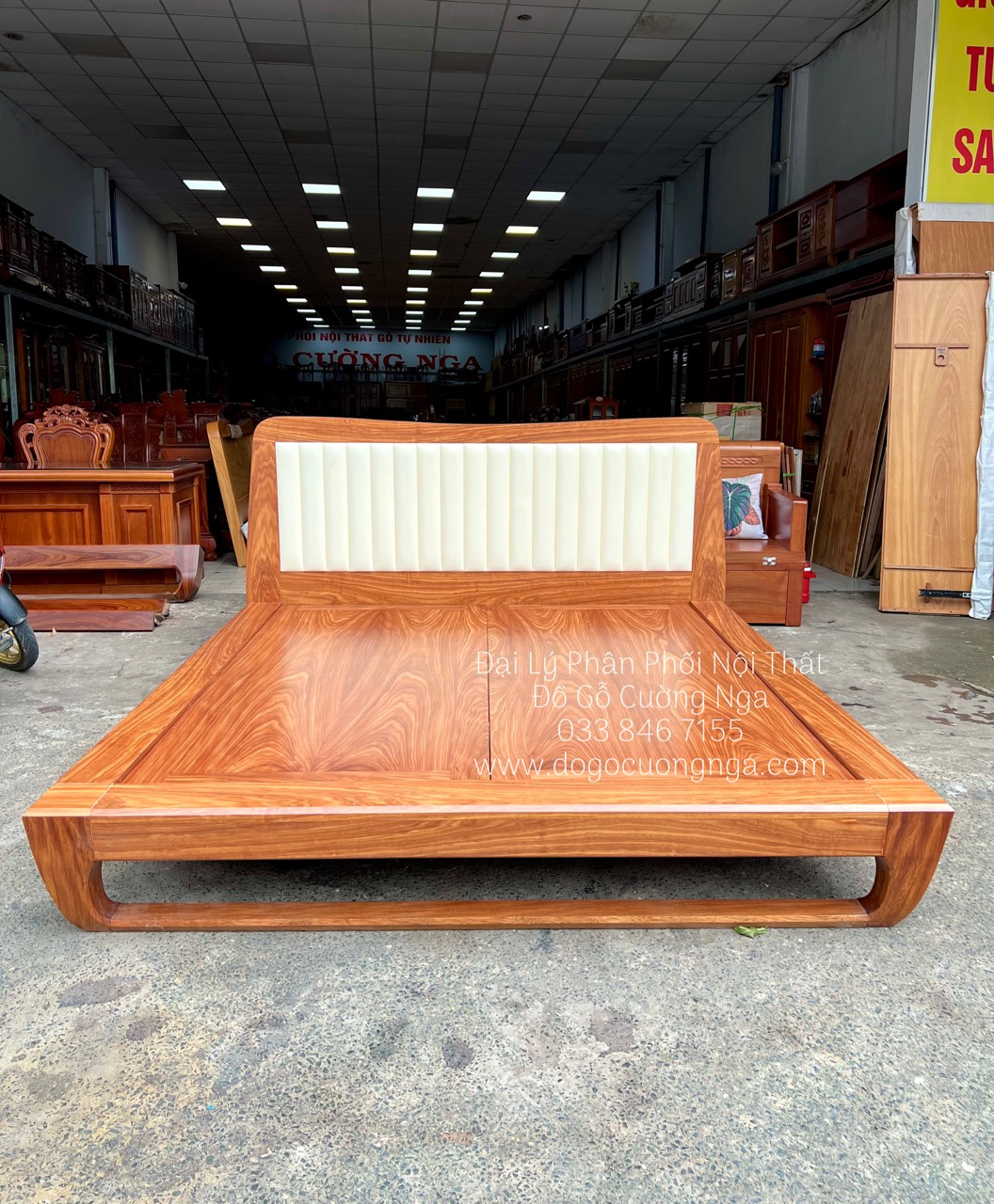 Giường gỗ cẩm kiểu hiện đại bọc nệm
