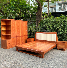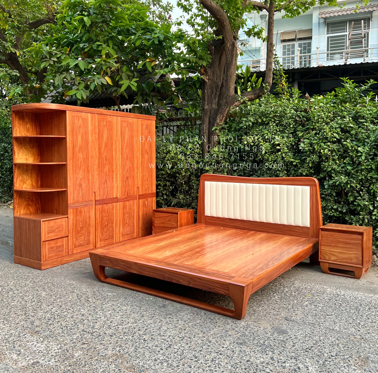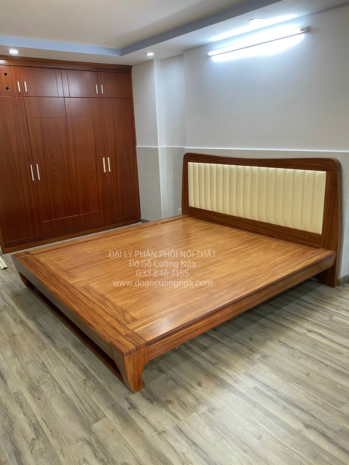Giường gỗ cẩm kết hợp comgo phòng ngủ
