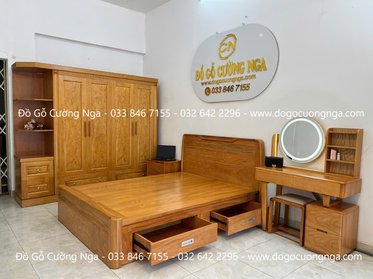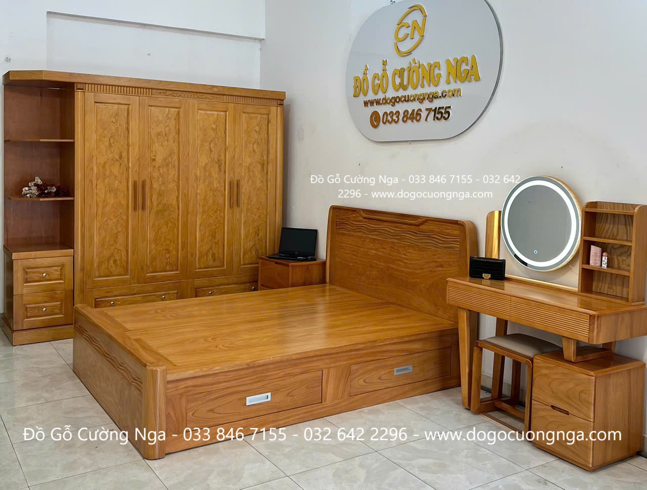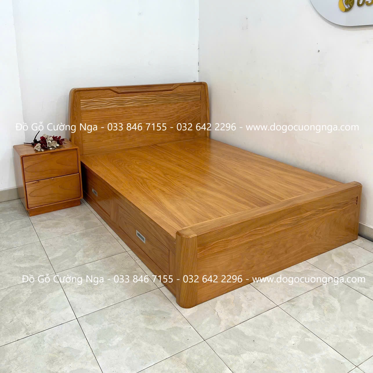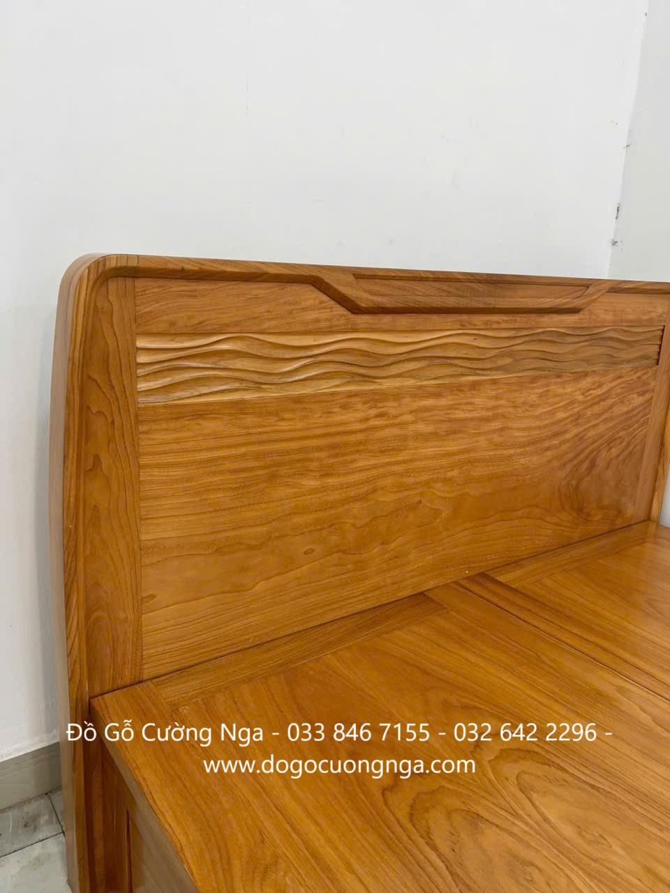 Giường Ngủ Gỗ Gõ Đỏ Hiện Đại Trạm Sóng 2 Ngăn Kéo