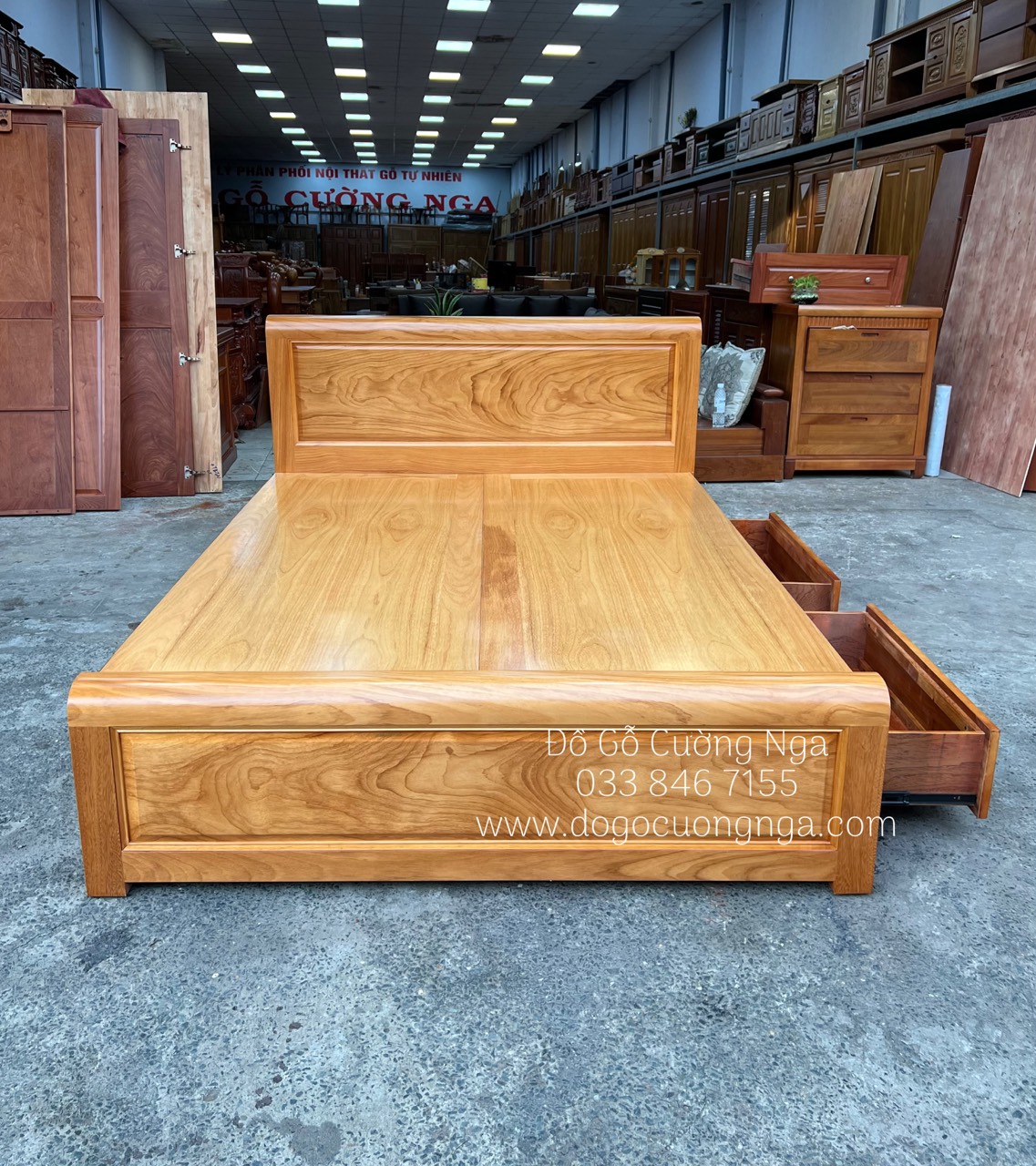 Video thực tế mẫu giường ngủ 2 ngăn kéo gỗ gõ đỏ