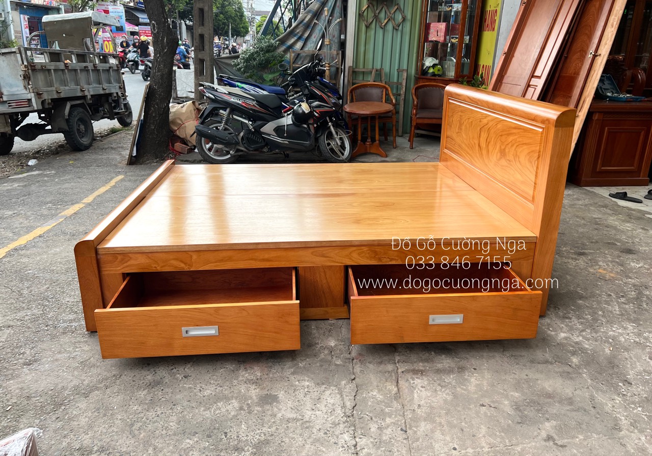 Giường gỗ gõ đỏ ngăn kéo hiện đại