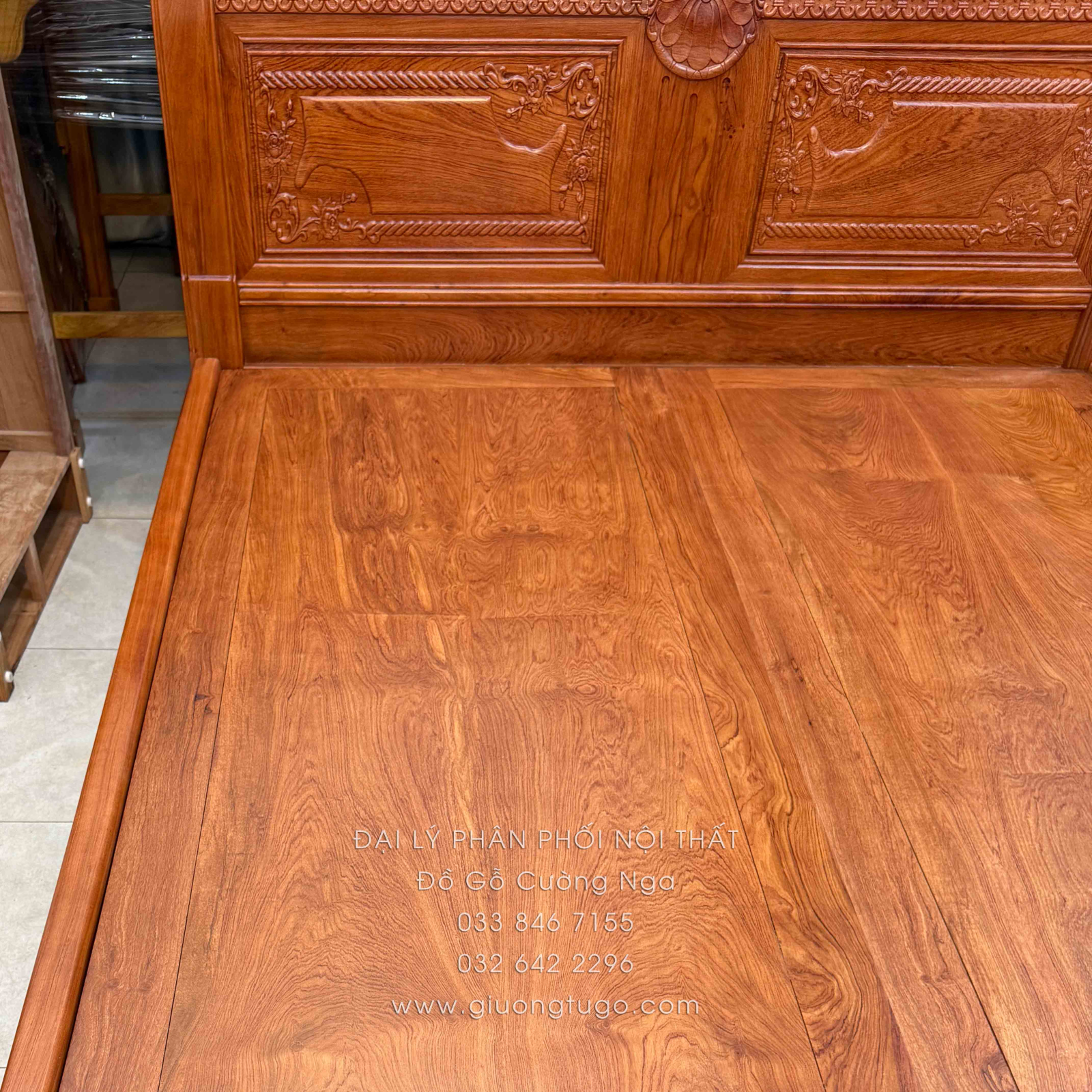 Thông tin chi tiết Giường Ngủ Gỗ Hương Đá Cao Cấp - Phản Liền Tấm - Họa Tiết Xẻ Quạt
