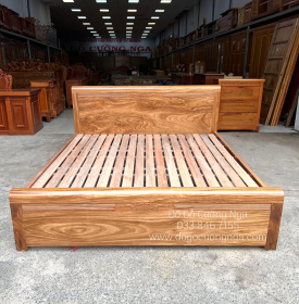 Giường không có hoa văn nhằm giúp nổi bật vân gỗ màu nâu đậm vô cùng nổi bật. Những đường vân gỗ hương xám tự nhiên sẽ tạo nên điểm nhấn ấn tượng cho không gian của bạn. Cùng đó là các khối gỗ vuông vắn, góc cạnh đậm chất tiện lợi và đẹp mắt. Sản phẩm giường ngủ gỗ tự nhiên này là lựa chọn phù hợp với xu hướng nội thất của đối tượng khách hàng trẻ.