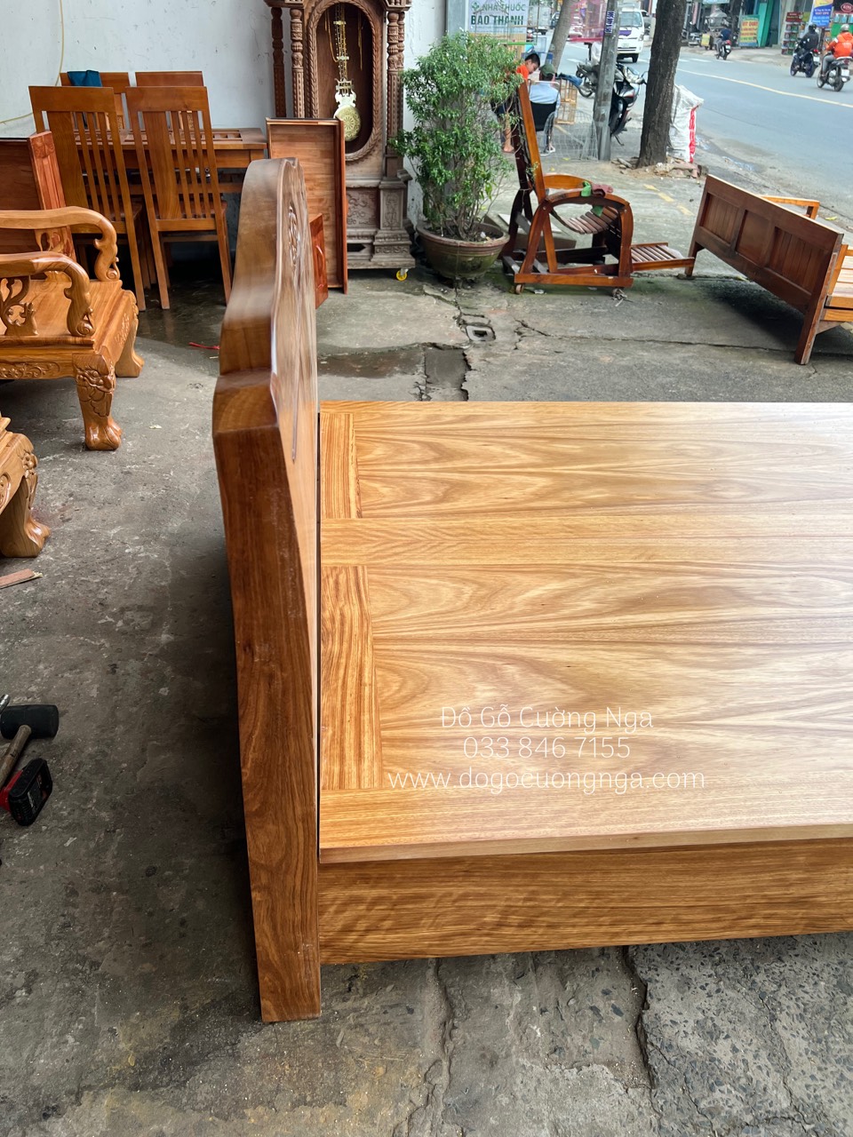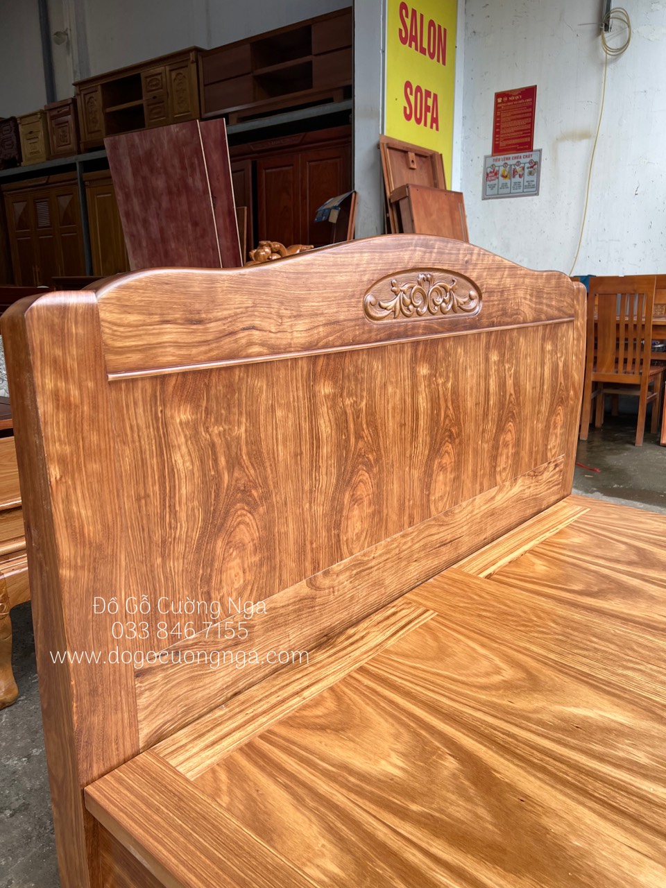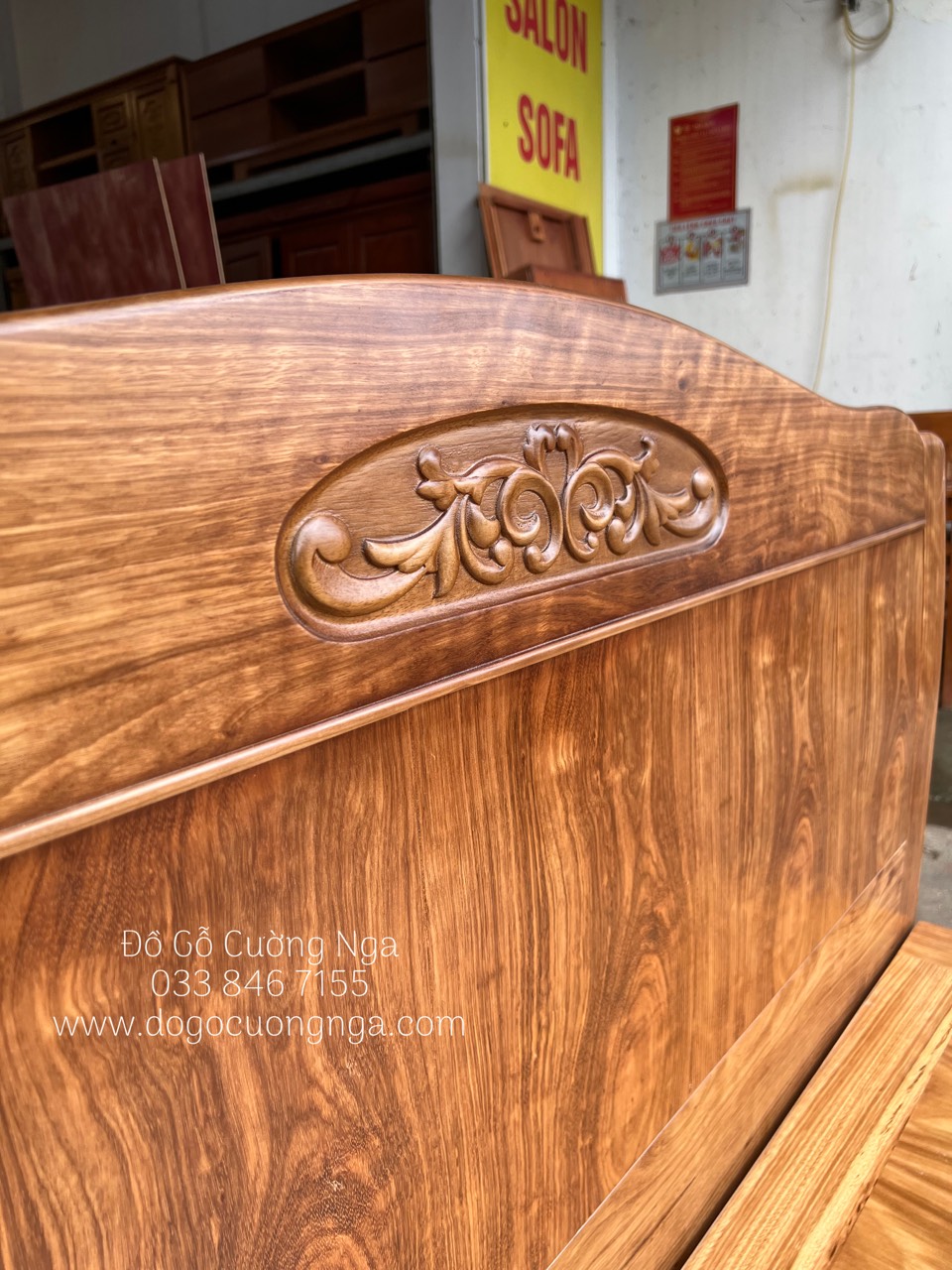 Chi tiết giường ngủ gỗ hương xám