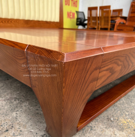 Giường Gấp Gỗ Xoan Đào 2 Ngăn Kéo Kèm Bàn (Có Kính) & Đôn Gỗ Sồi Bền Đẹp