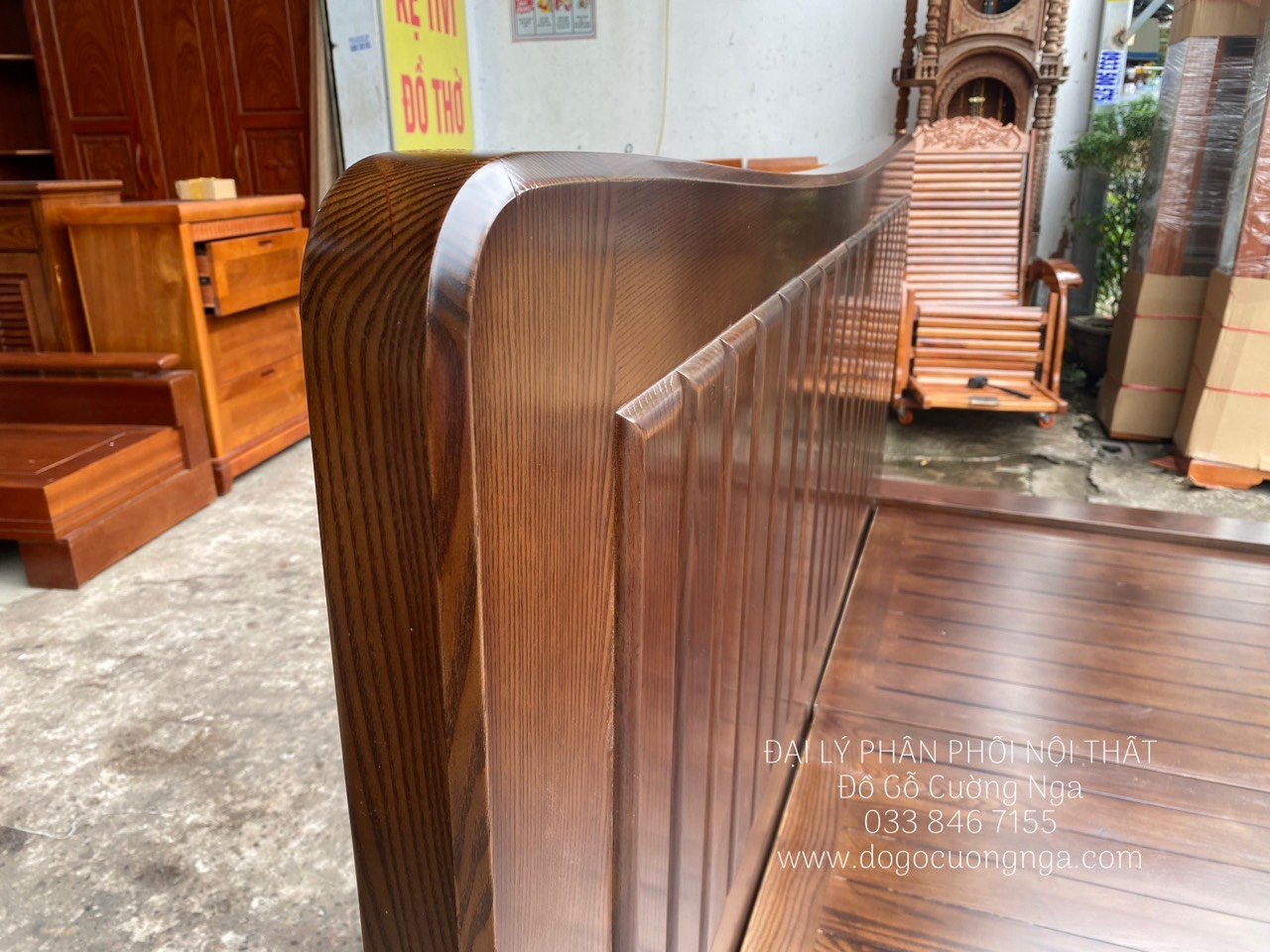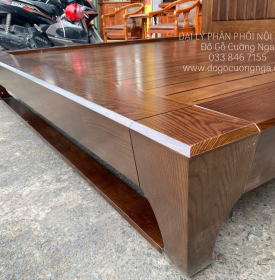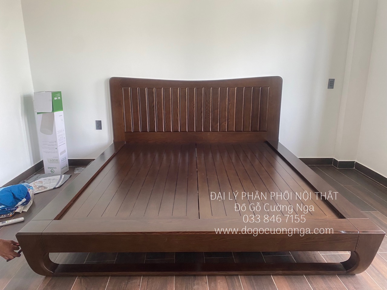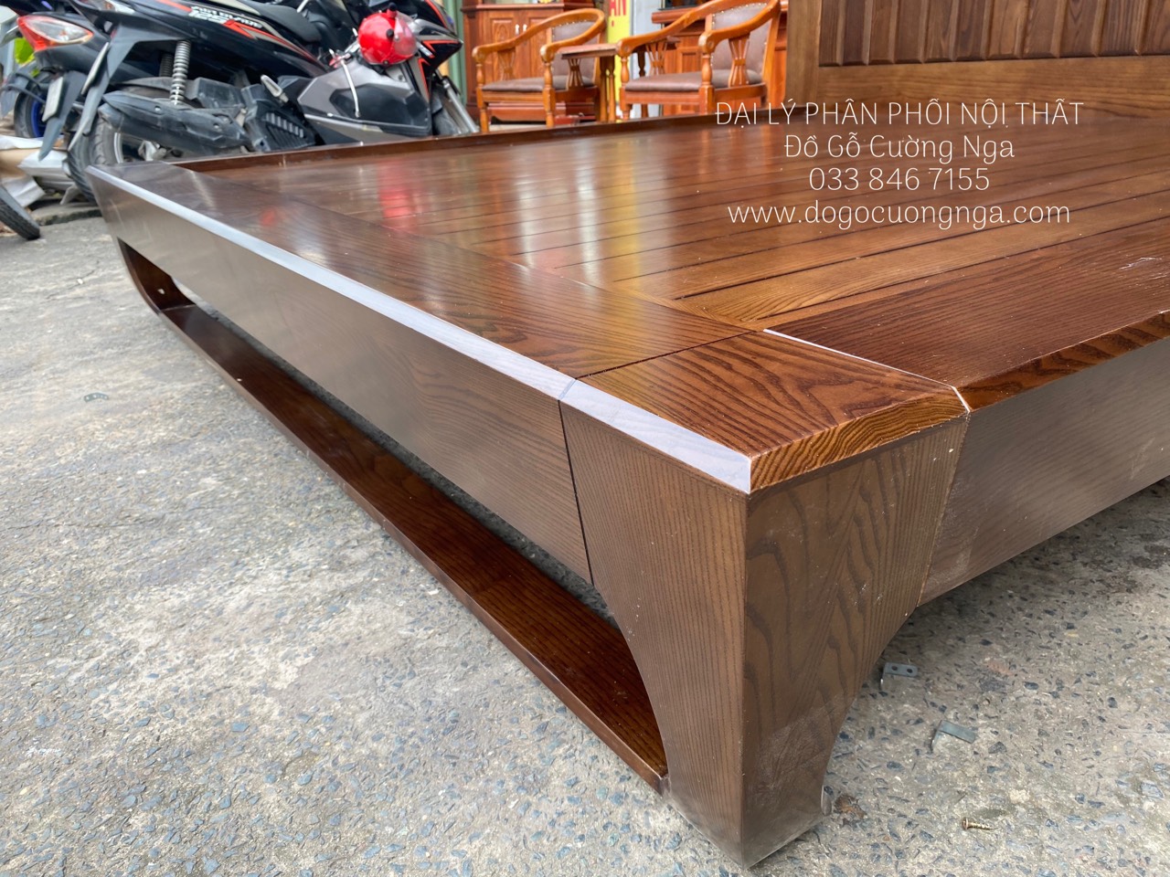 Chi tiết giường nhật chân quỳ gỗ sồi nga màu óc chó