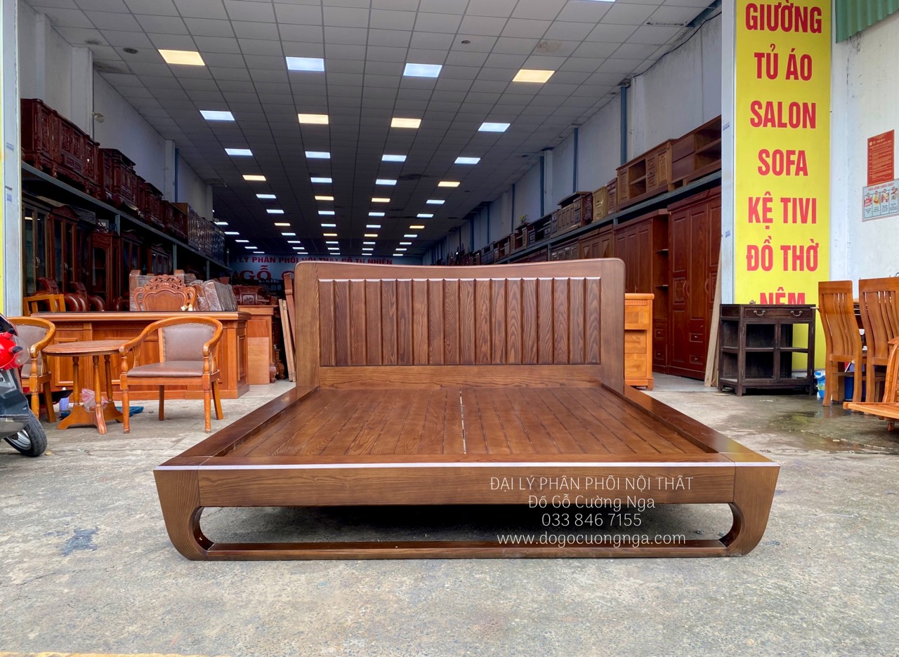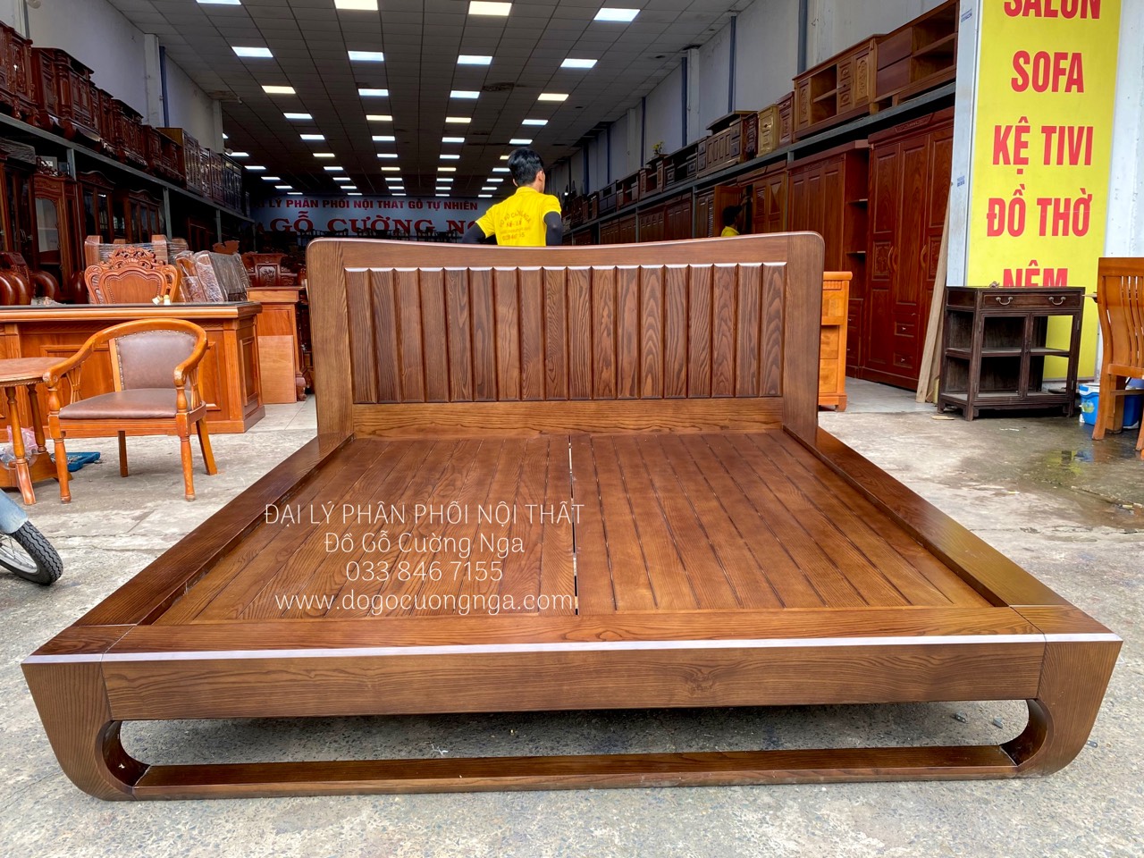 Giường gỗ sồi nga kiểu nhật óc chó hiện đại