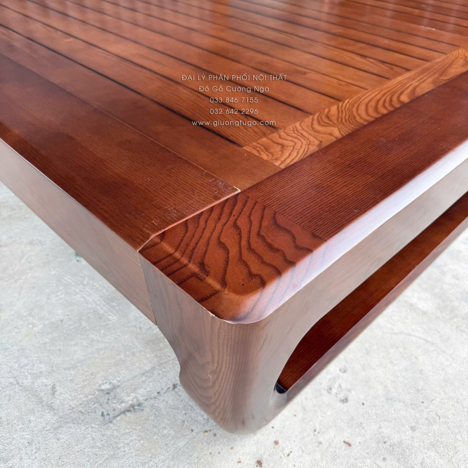 Giường Gấp Gỗ Xoan Đào 2 Ngăn Kéo Kèm Bàn (Có Kính) & Đôn Gỗ Sồi Bền Đẹp