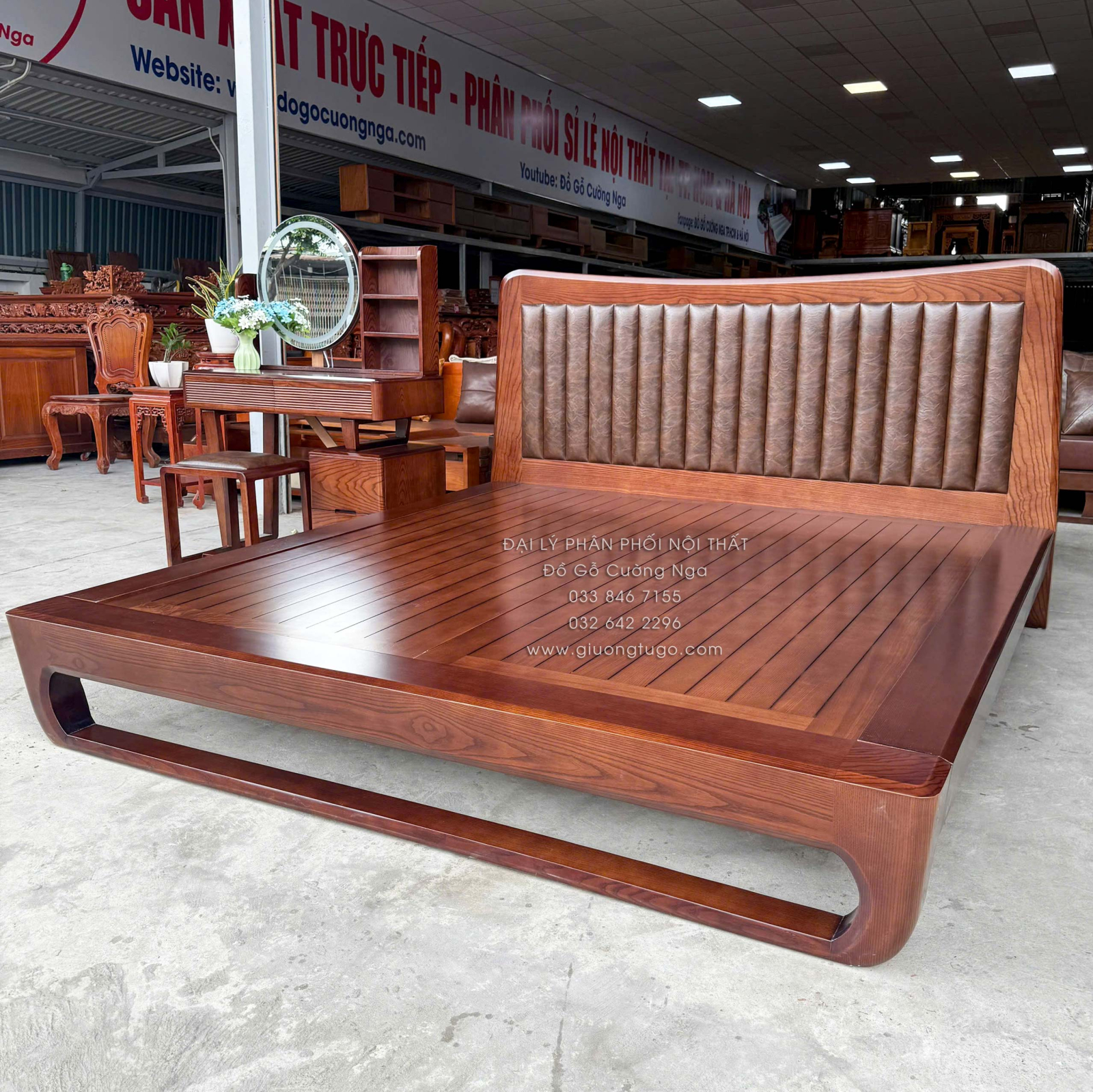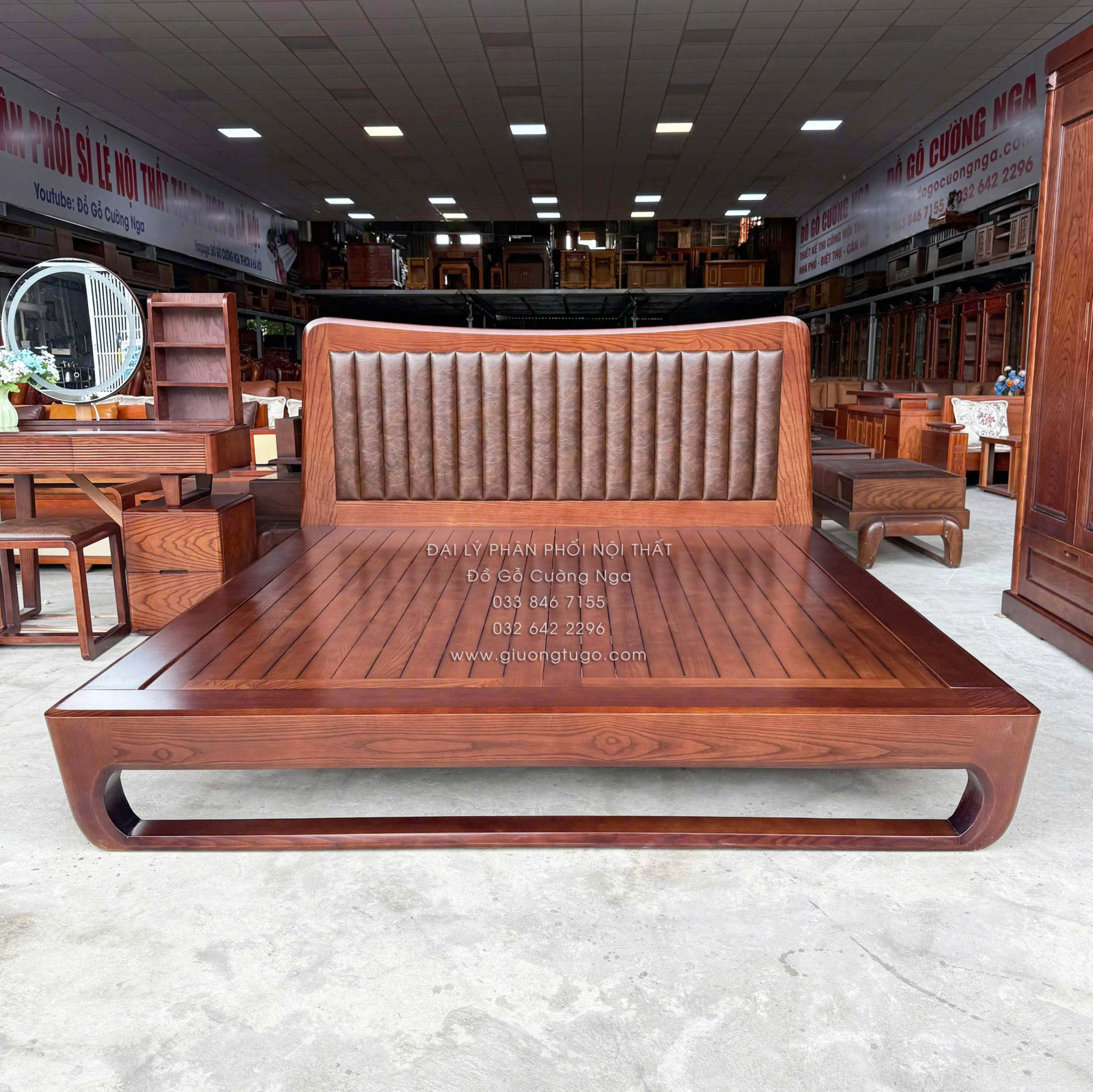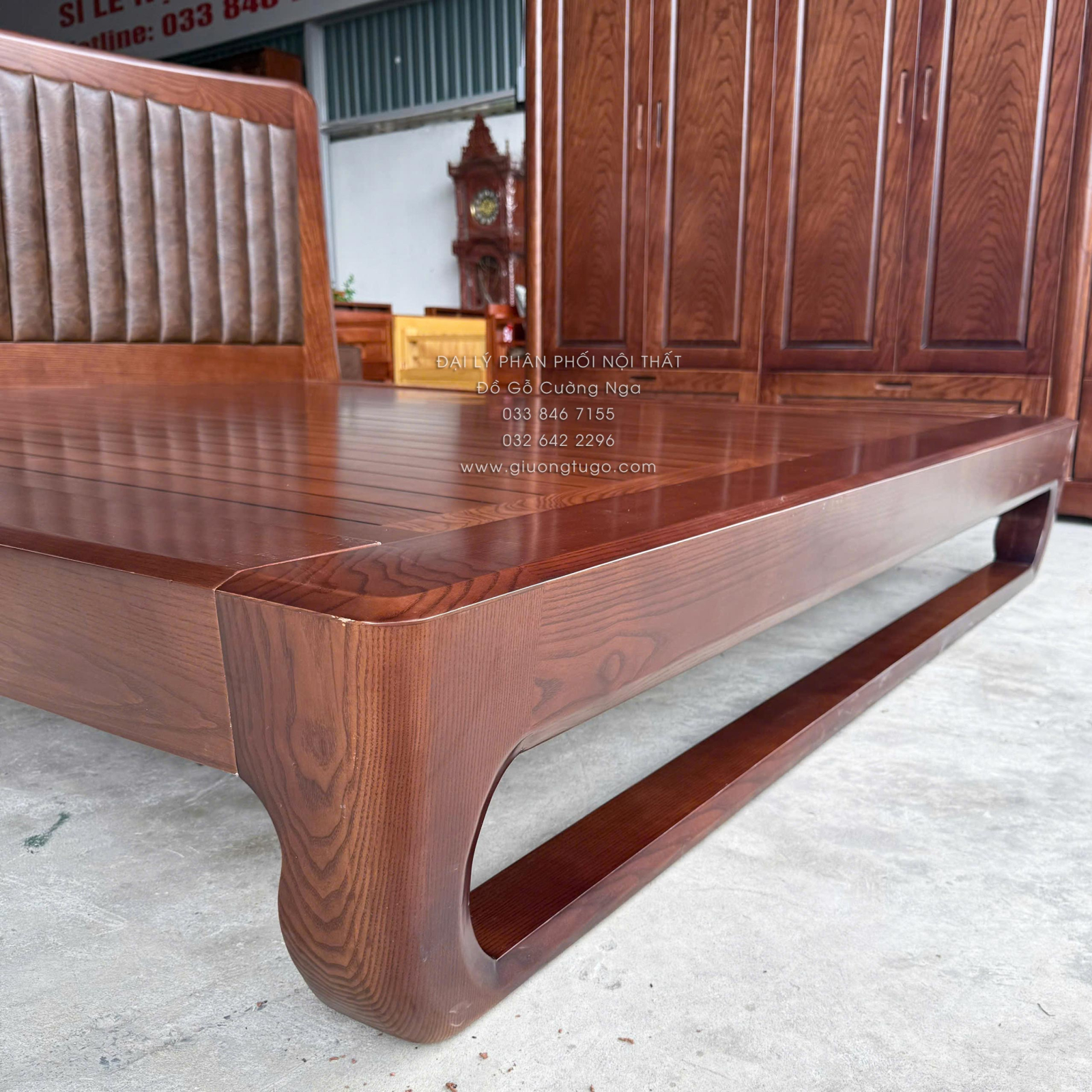 Giường Ngủ Gỗ Sồi Nga Màu Óc Chó Mẫu Chân Quỳ Bọc Nệm Cao Cấp (Giao Khách)