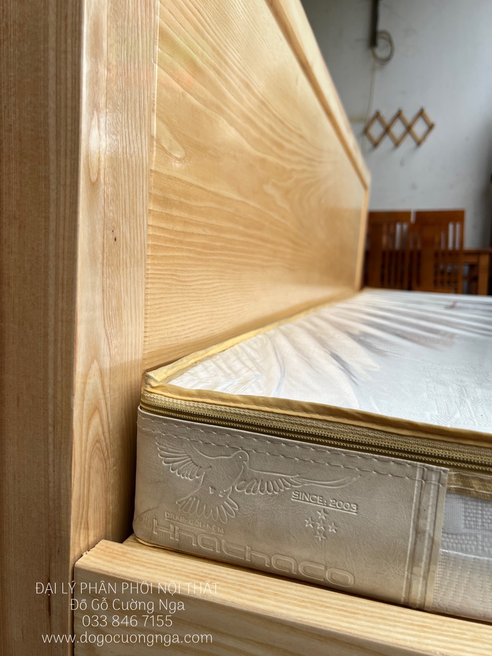 Giường gỗ sồi nga kê nệm 10cm vừa đẹp