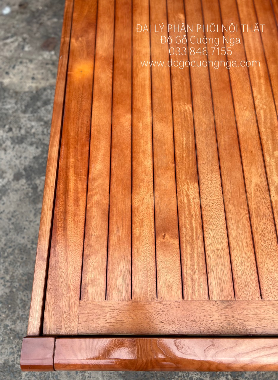 Giường Gấp Gỗ Xoan Đào 2 Ngăn Kéo Kèm Bàn (Có Kính) & Đôn Gỗ Sồi Bền Đẹp