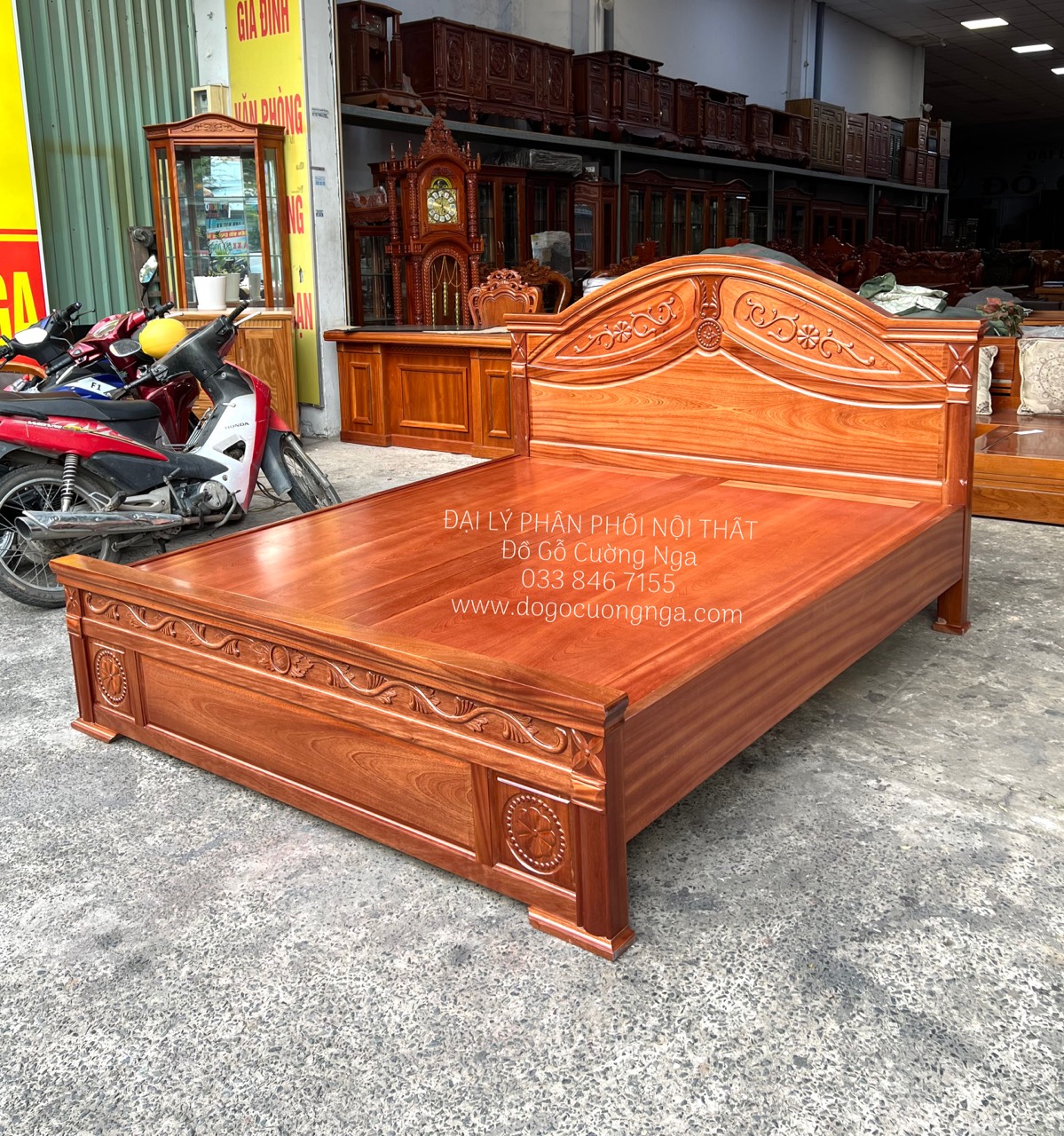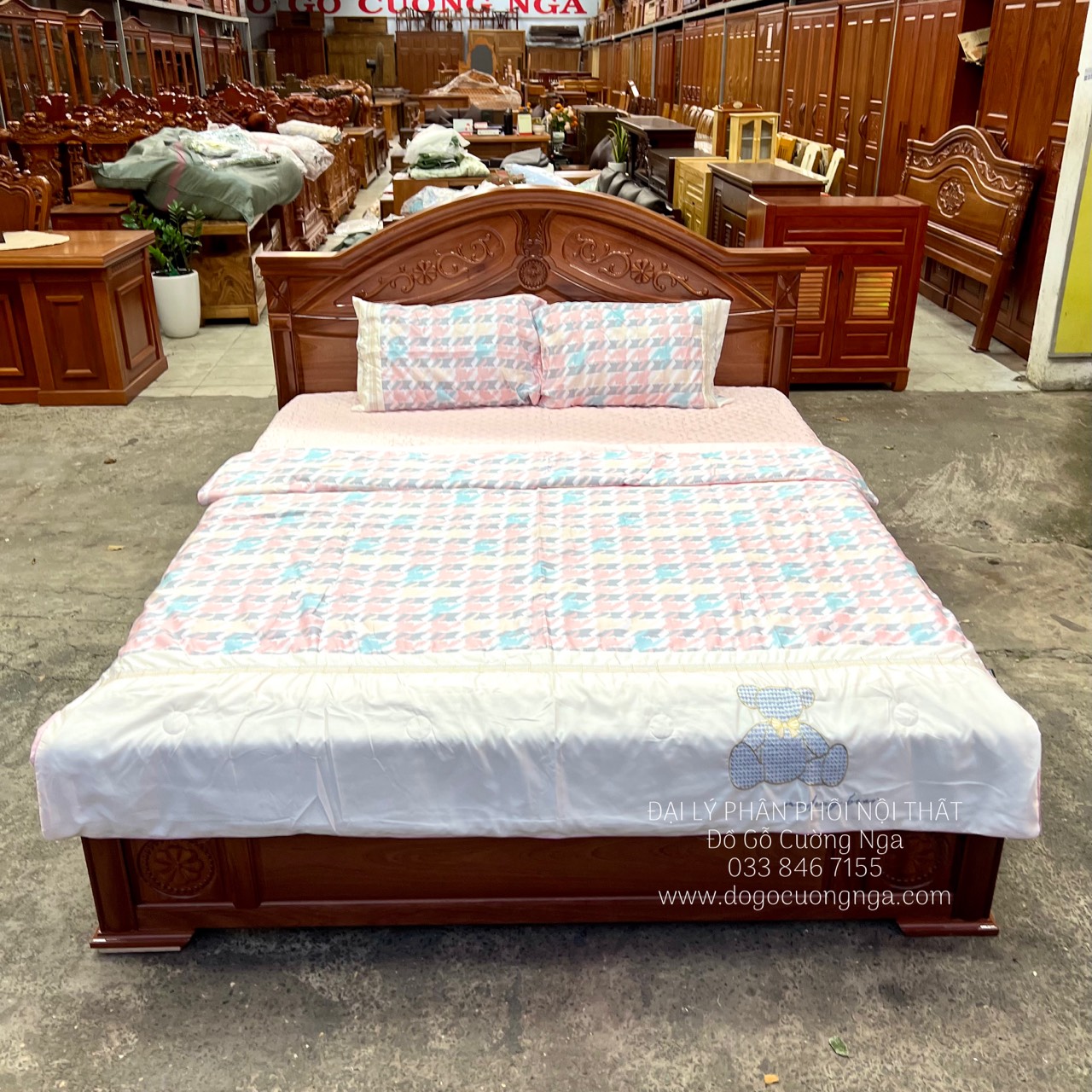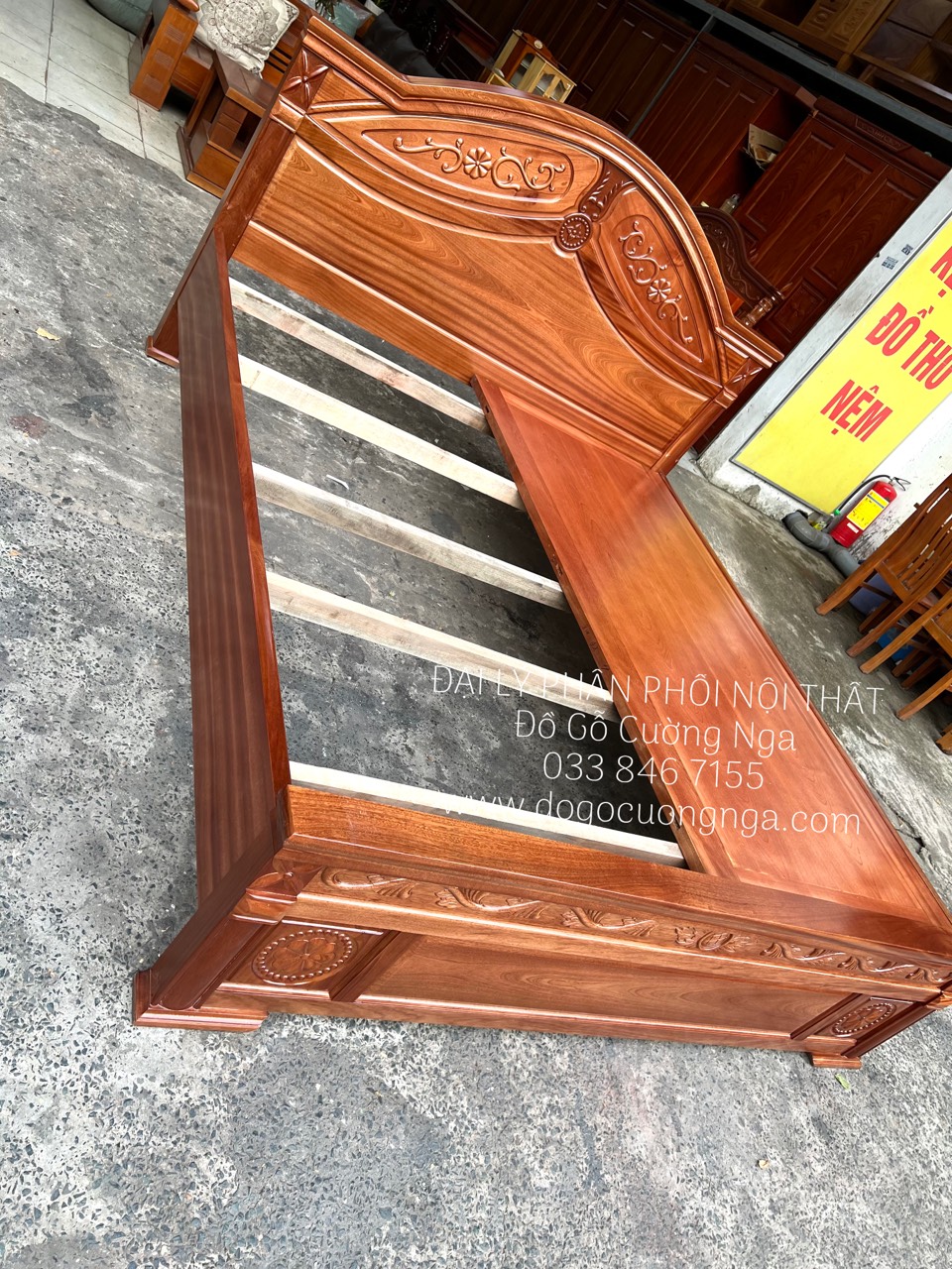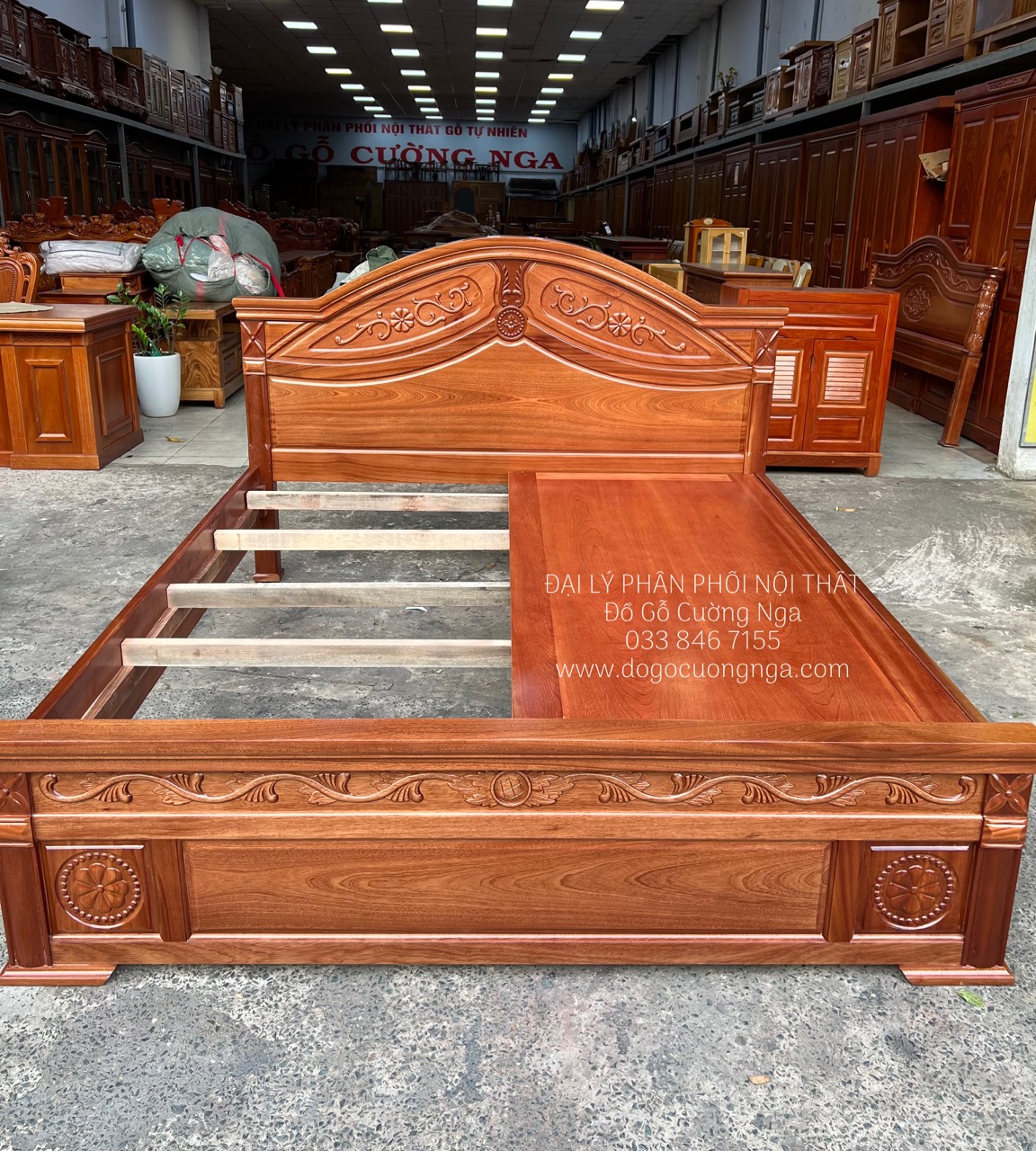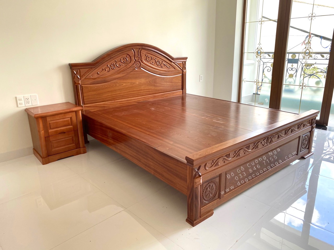 Chi tiêt giường gỗ xoan đào