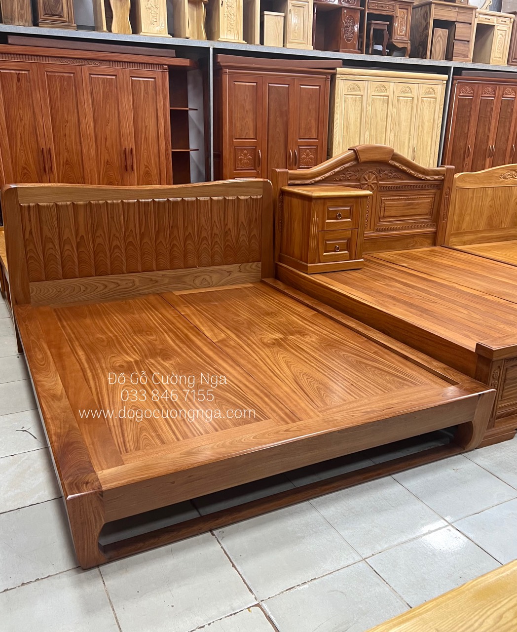 Chi tiết giường ngủ gỗ xoan đào kiểu nhật