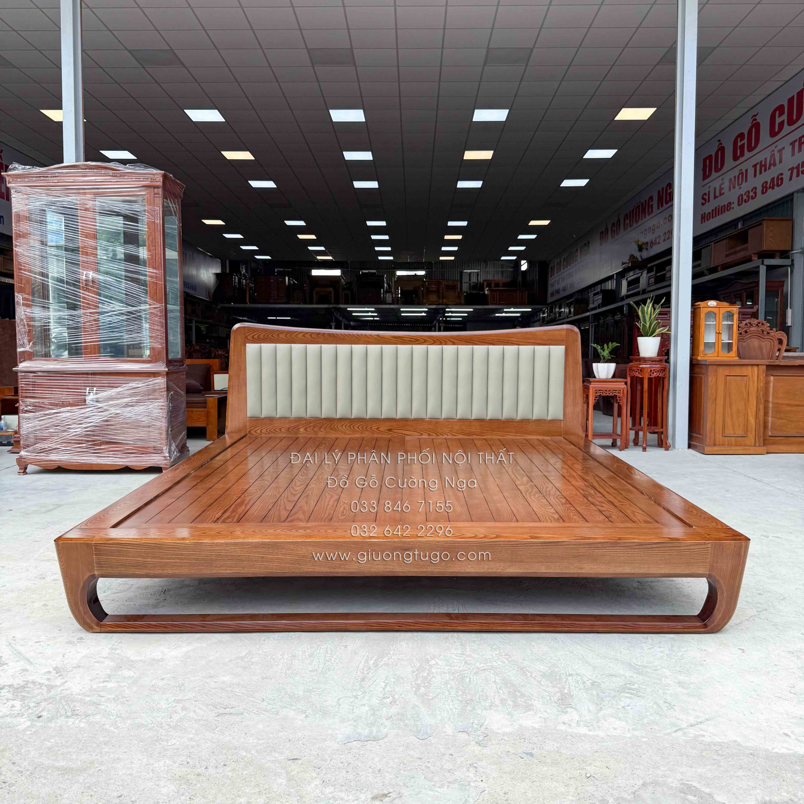 Giường Ngủ Kiểu Nhật Gỗ Sồi Nga Lau Màu Óc Chó Mẫu Chân Quỳ Bọc Nệm