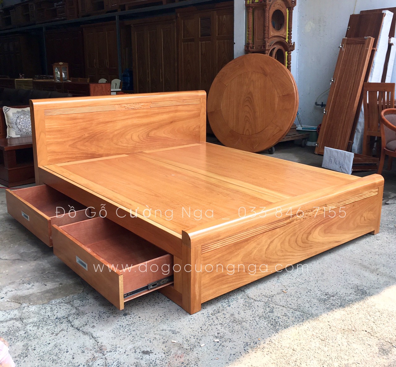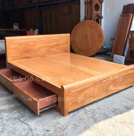 Giường gỗ gõ đỏ ngăn kéo hiện đại