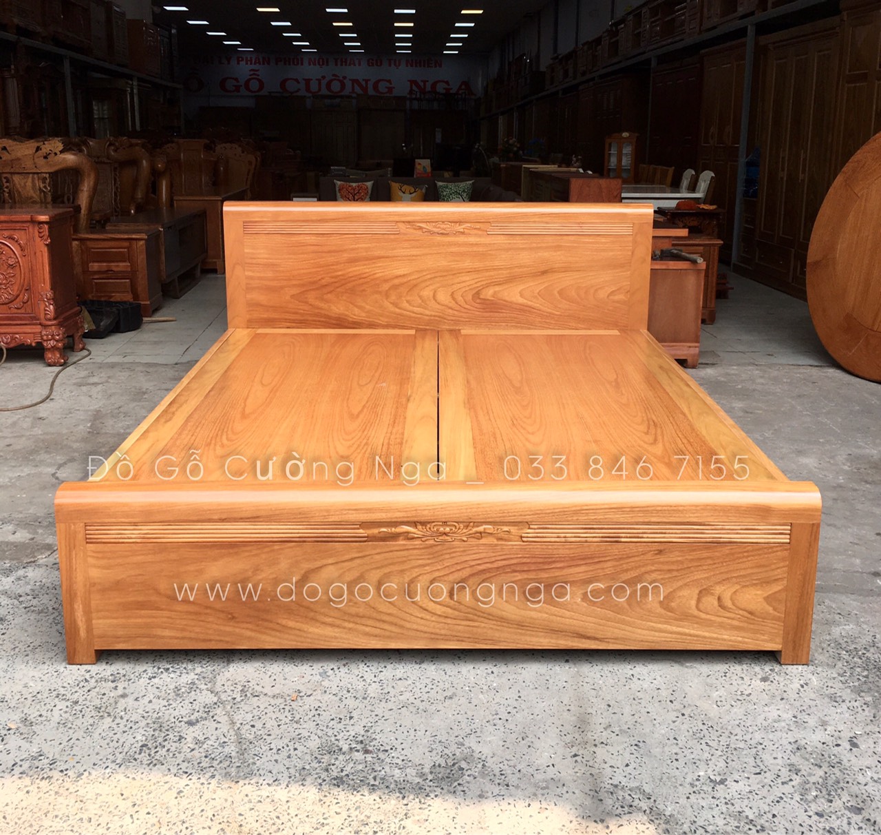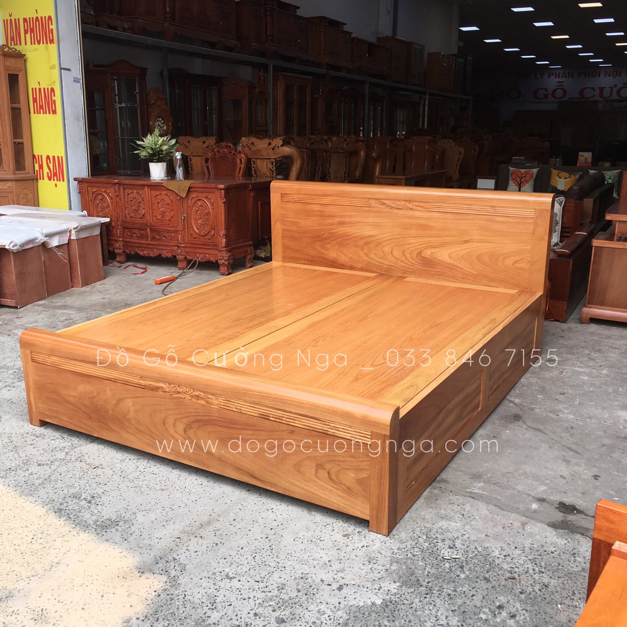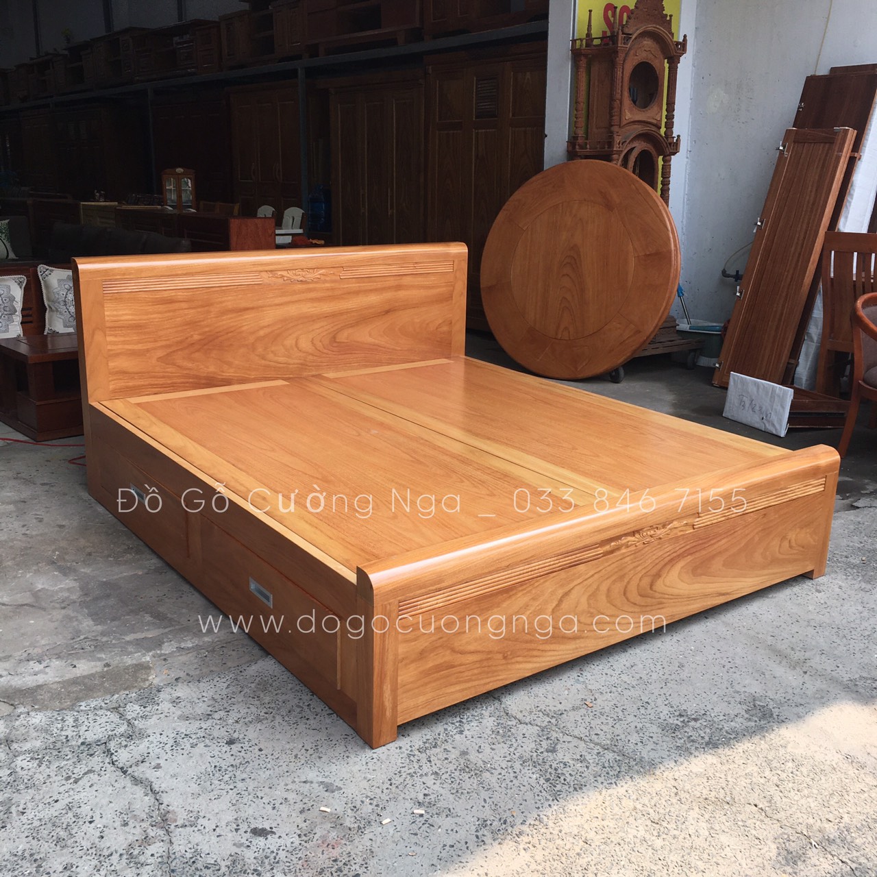 Giường ô kéo gỗ gõ đỏ hiện đại - mẫu chỉ hoa