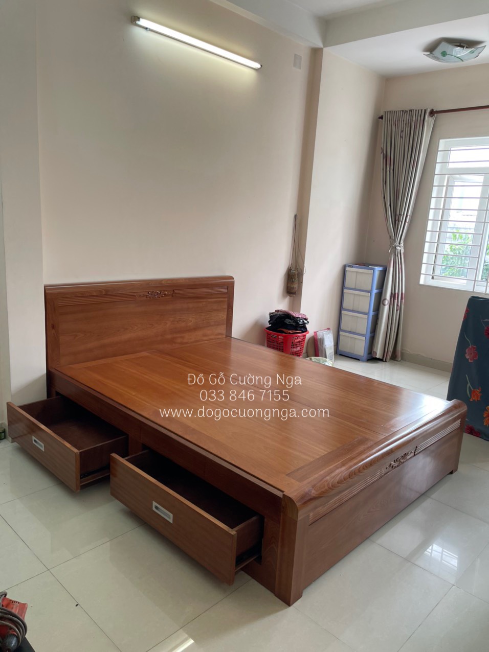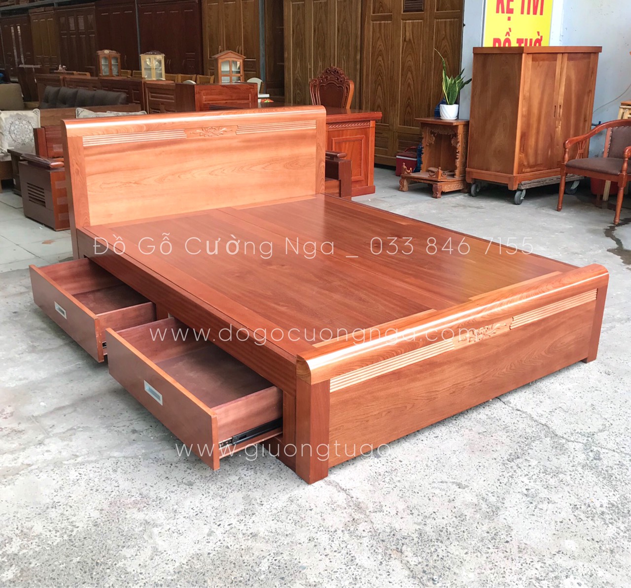 Giường ngủ gỗ xoan đào 2 ngăn kéo giao khách