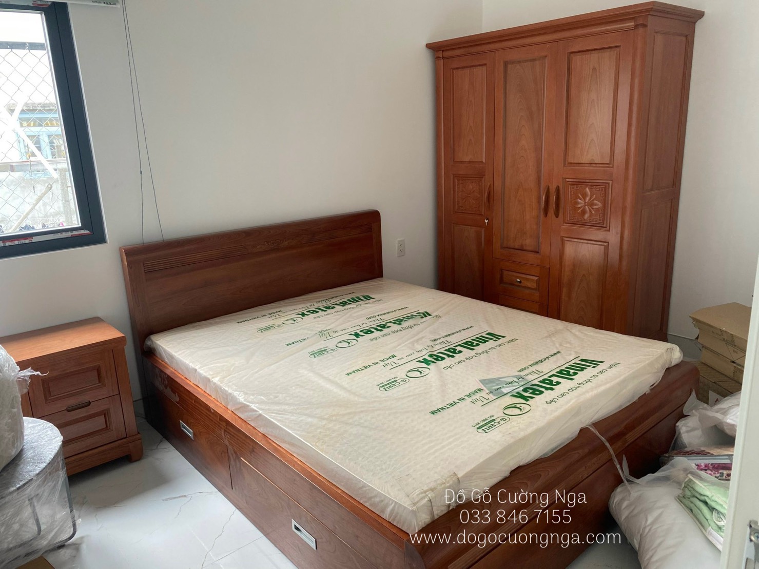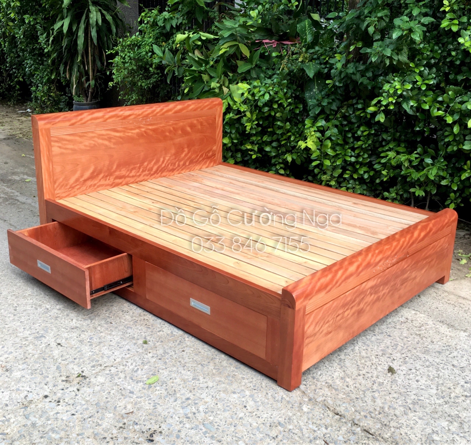 Giường gỗ xoan đào 2 ngăn kéo giao khách