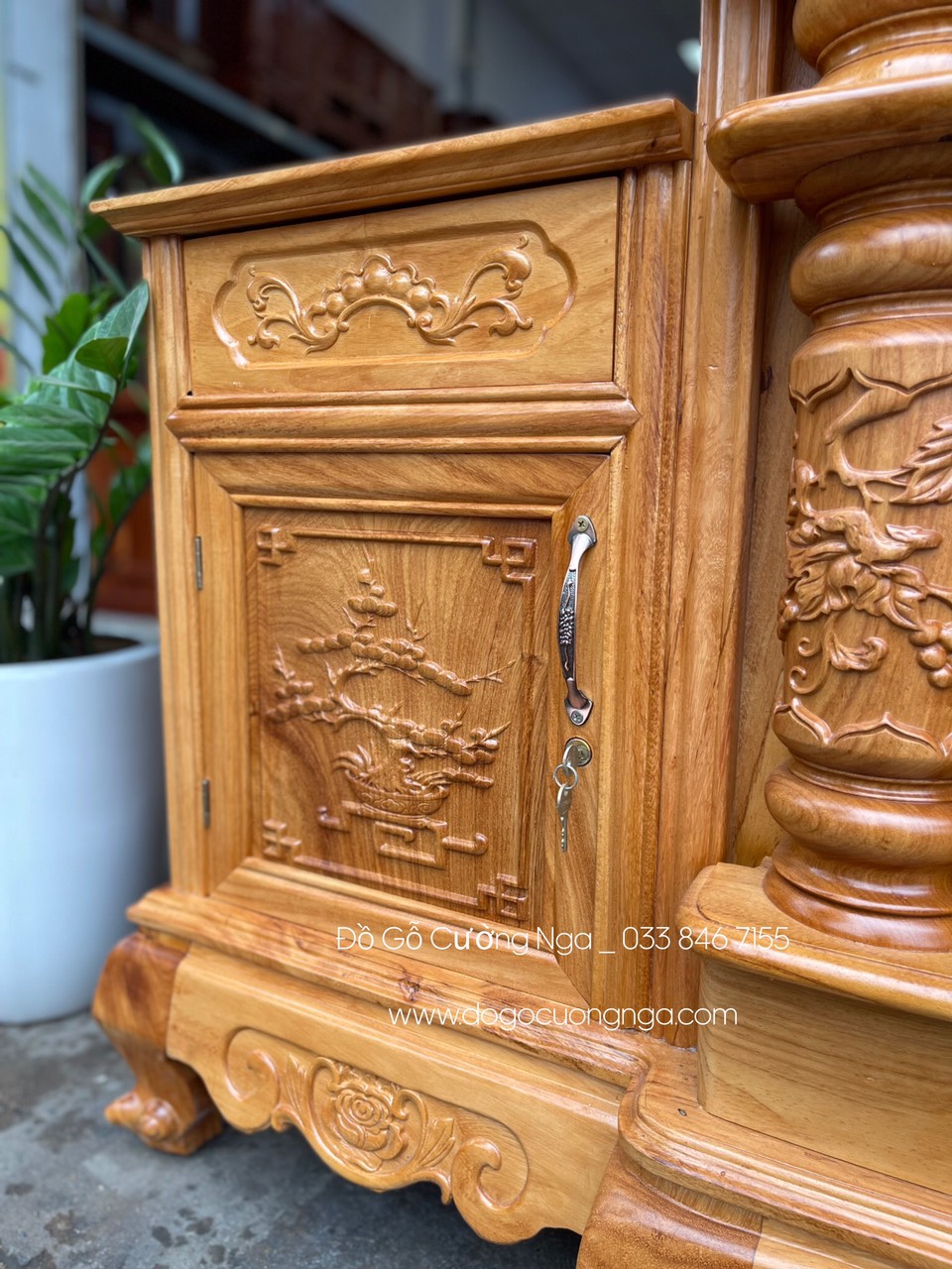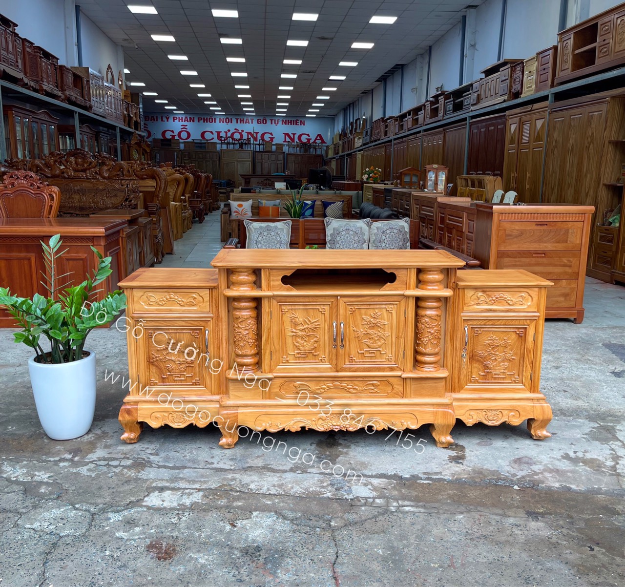 Kệ tivi gỗ gõ đỏ cao cấp - cột nho