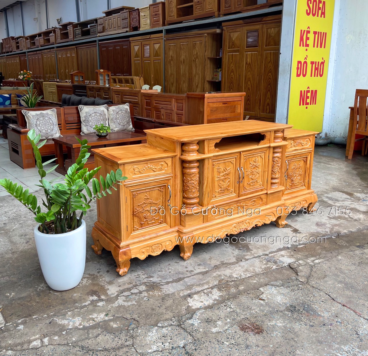 Kệ tivi gỗ Gõ Đỏ mẫu cột nho cao cấp KG 06