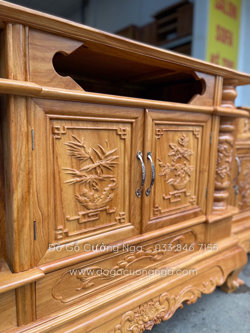 Kệ tivi gỗ gõ đỏ - thiết kê bên trong tủ kệ