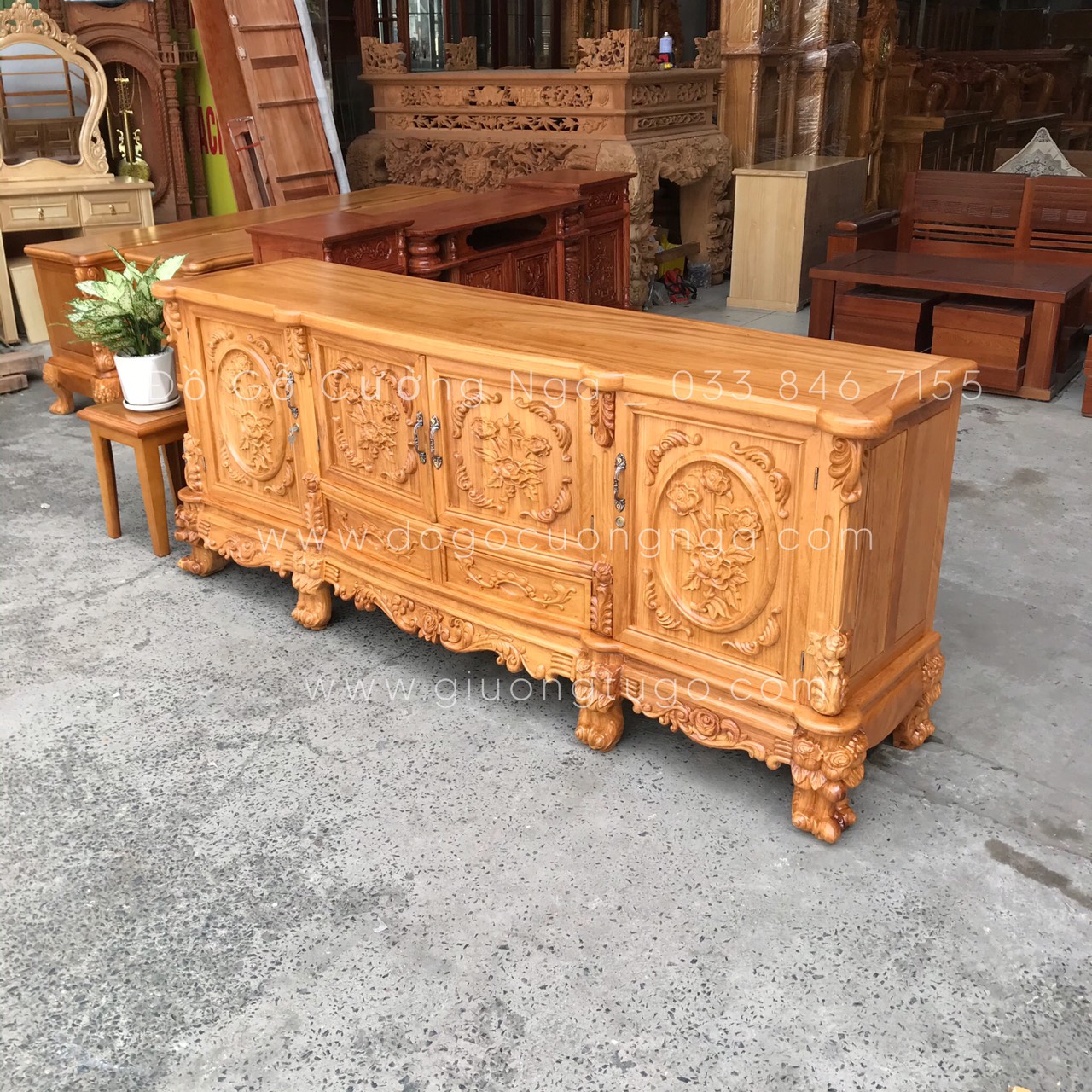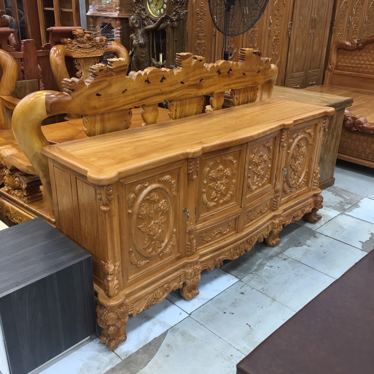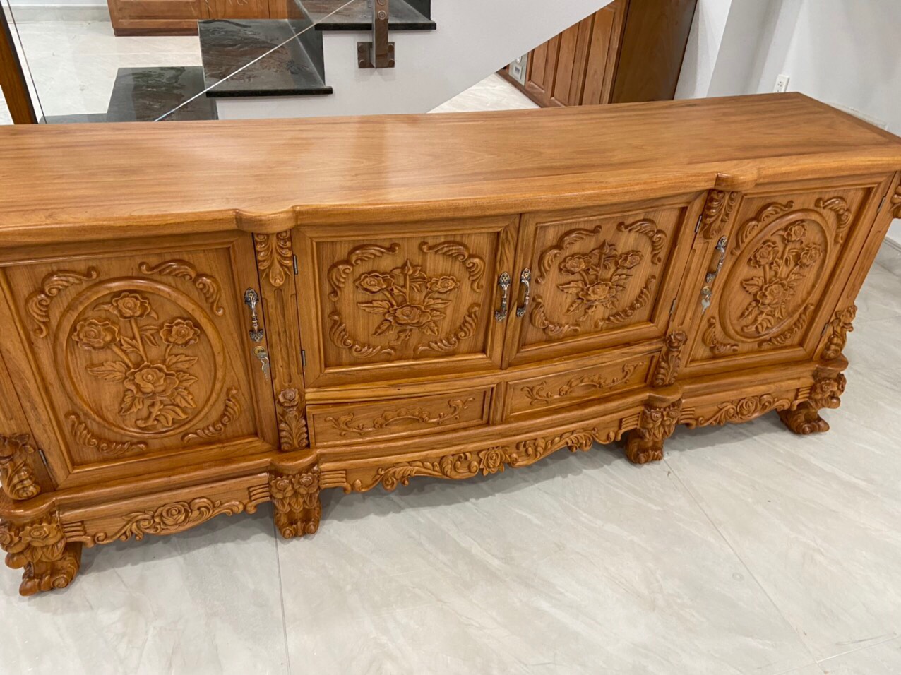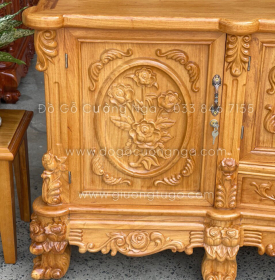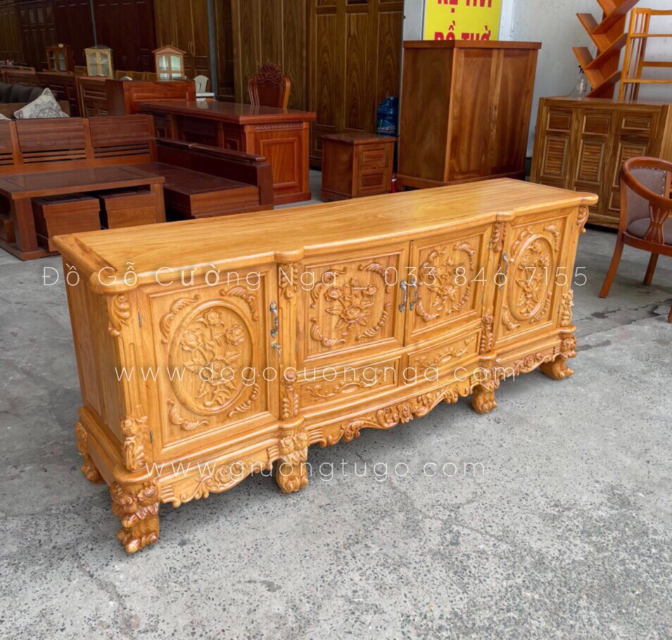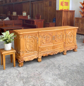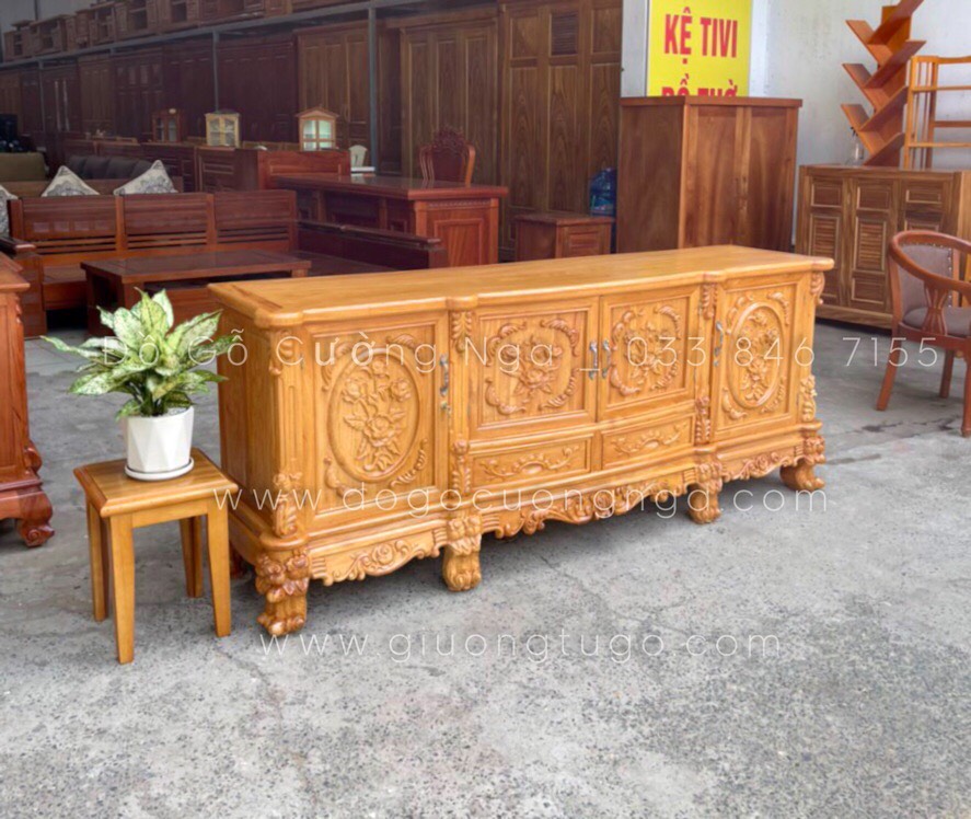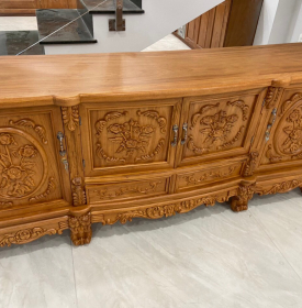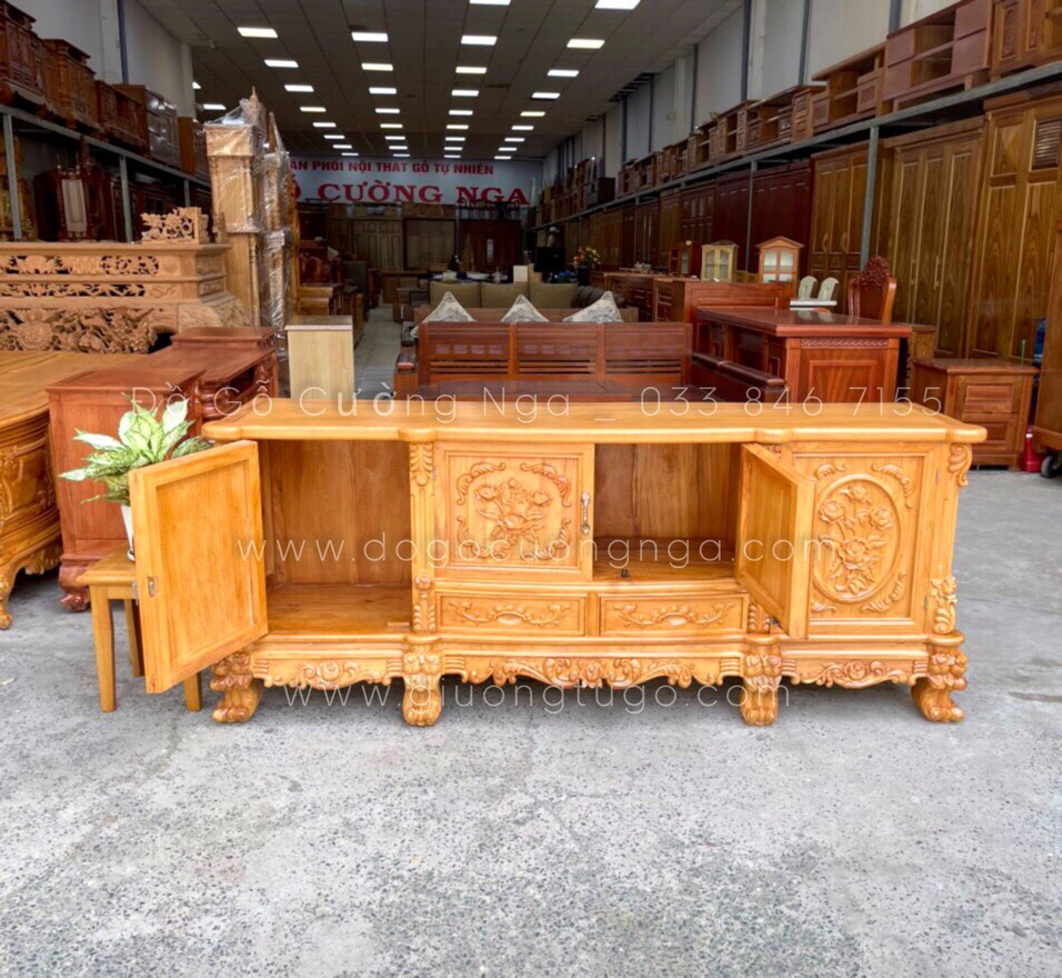 Kệ tivi gỗ gõ đỏ cao cấp mẫu hoa hồng