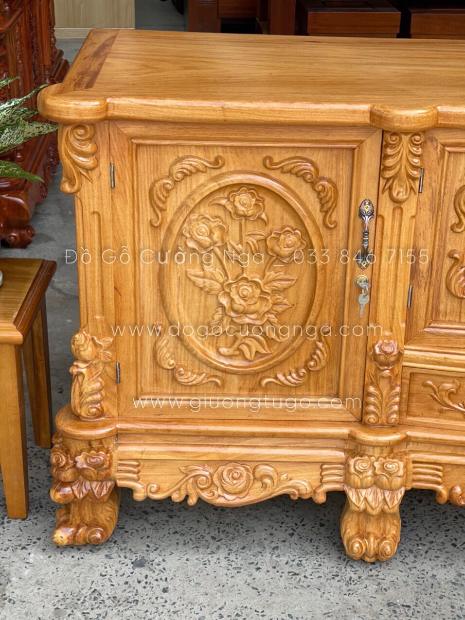 Kệ tivi gỗ gõ đỏ cao cấp mẫu hoa hồng KG 07