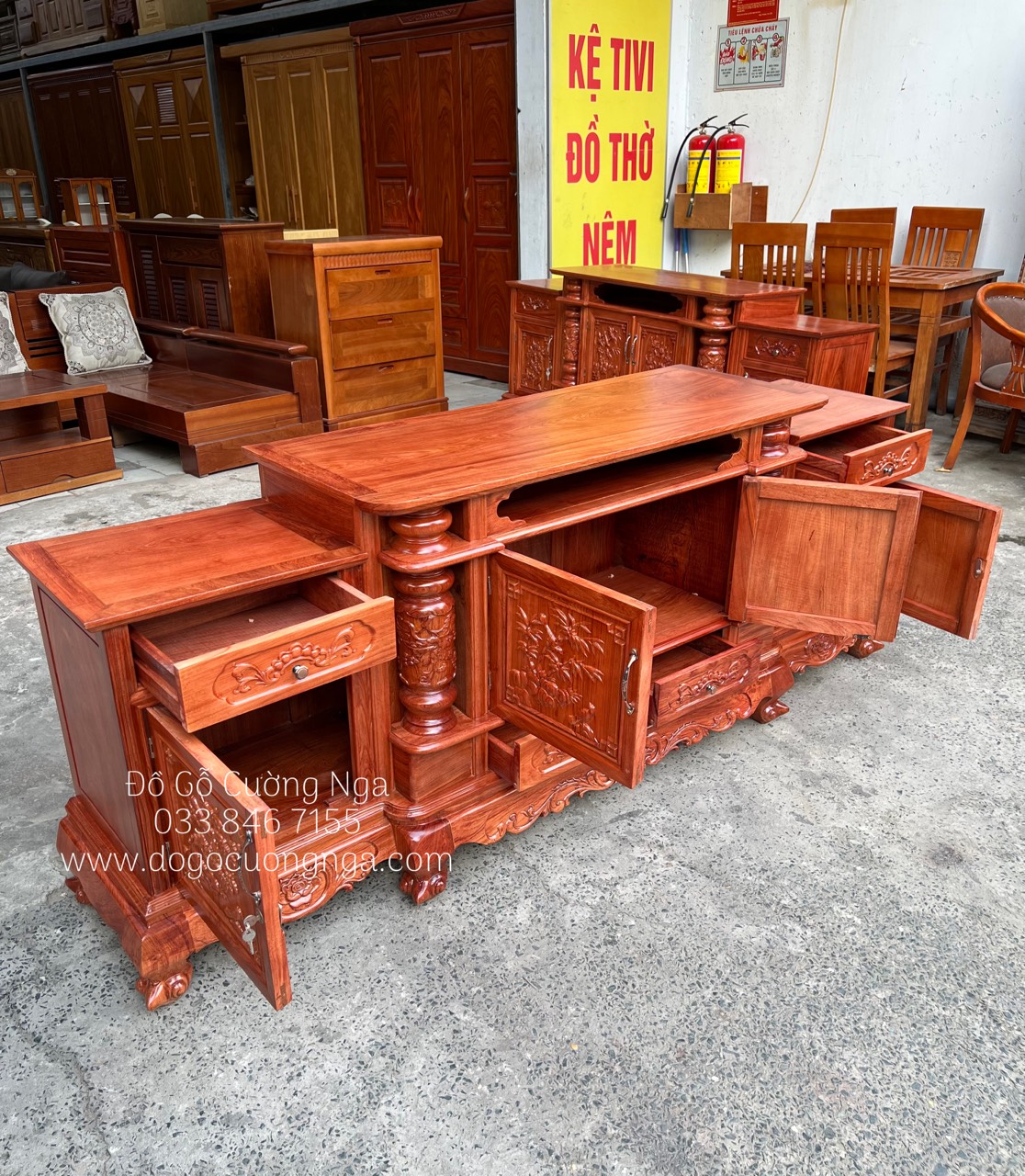 \Kệ tivi gỗ Hương Đá cao cấp 2m2 - cột nho