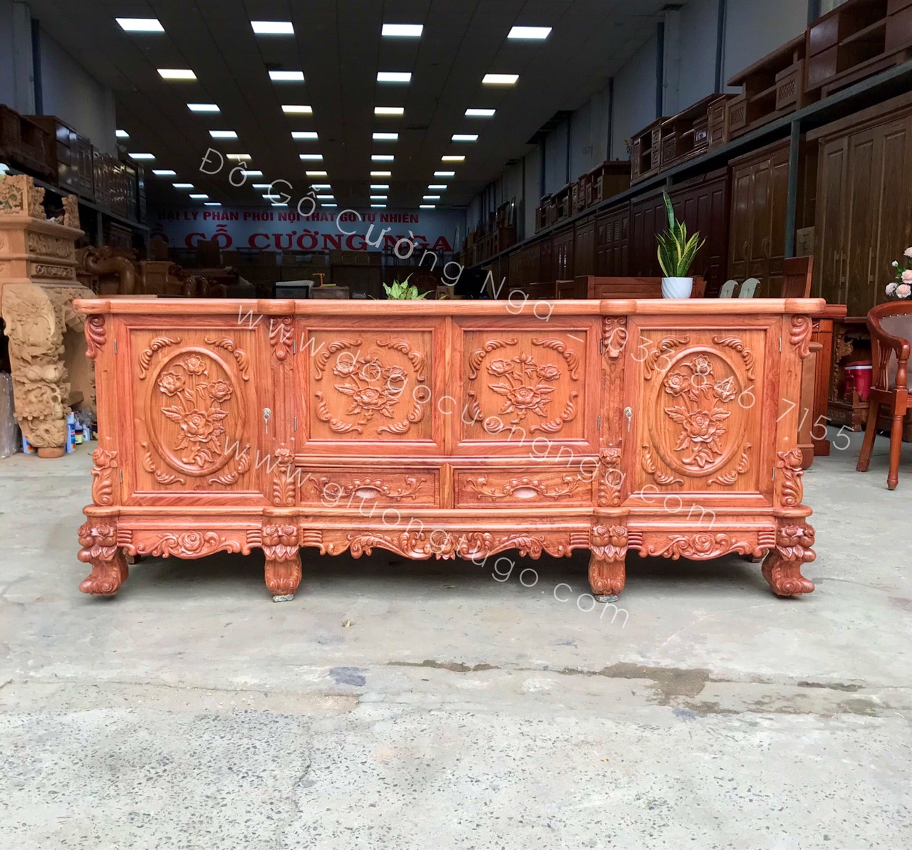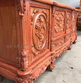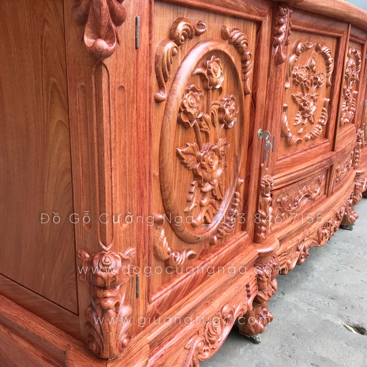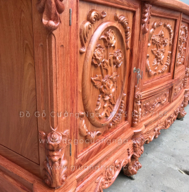 Kệ tivi gỗ Hương Đá cao cấp mẫu hoa hồng KG 05