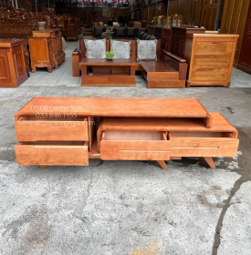 Kệ tivi gỗ thiết kế gồm 2 tầng với 1 ngăn cố định, 1 ngăn có thể kéo dài linh hoạt, với ngăn kệ này người dùng có thể tùy chỉnh để mở rộng thêm diện tích mặt sàn. Tăng kích thước mặt kệ lên tới 76cm, mặt kệ dưới thêm 50cm, vừa có thể để đồ dùng, vừa có thể để phụ kiện trang trí hay các loại đồ dùng phòng khách khác.