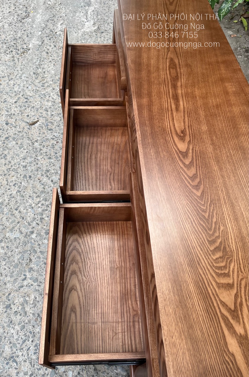 Chi tiết kệ tivi gỗ sồi óc chó hiện đại