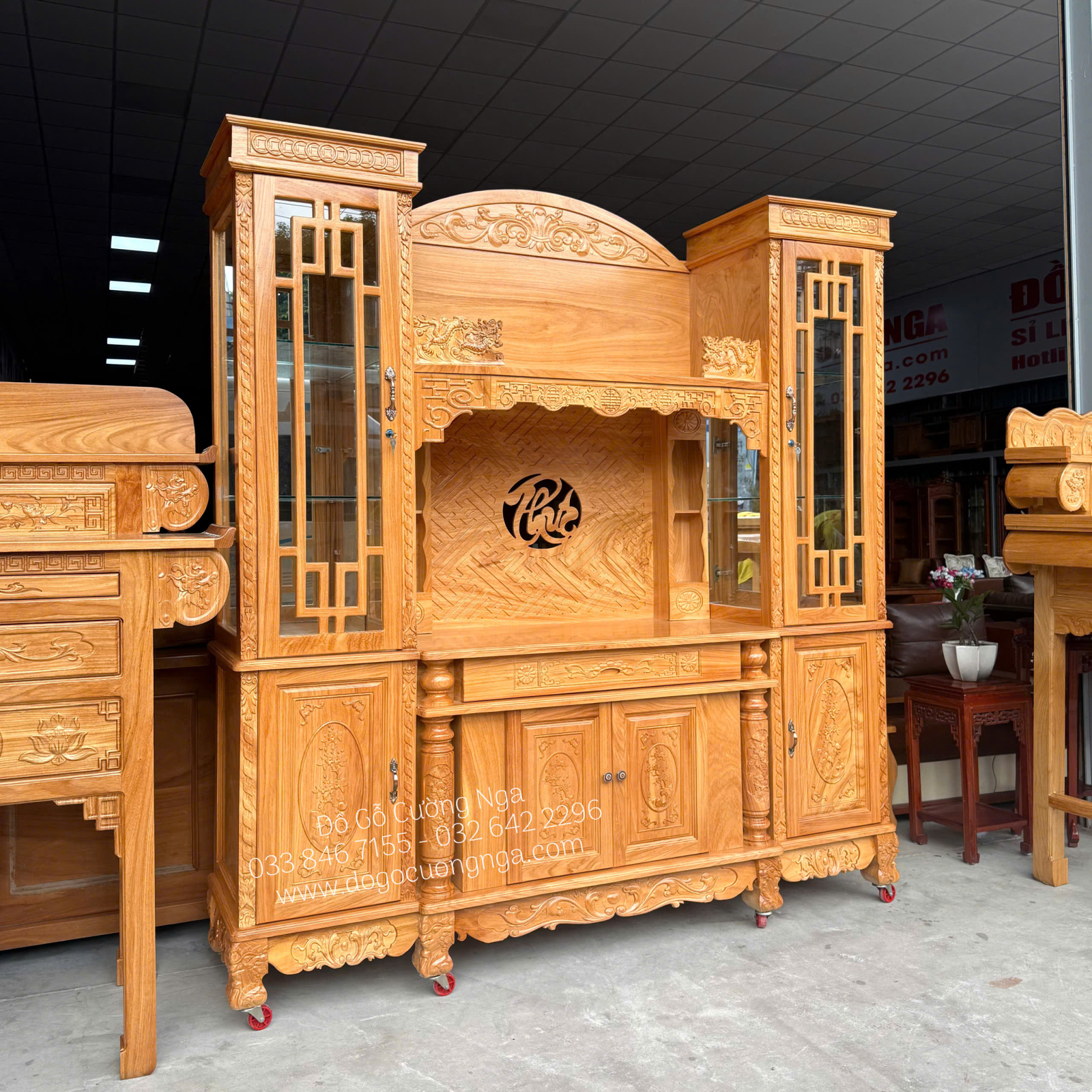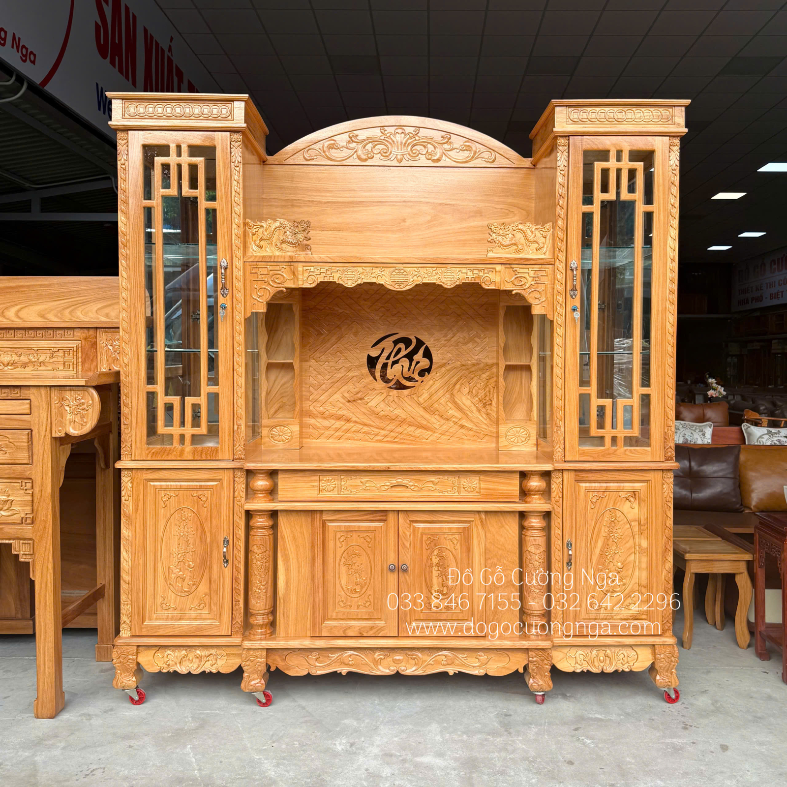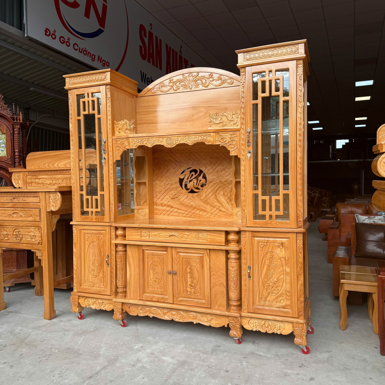 Kệ Tivi Phòng Khách Kết Hợp Tủ Rượu Gỗ Gõ Đỏ Mặt Lưng Liền Sang Trọng