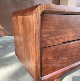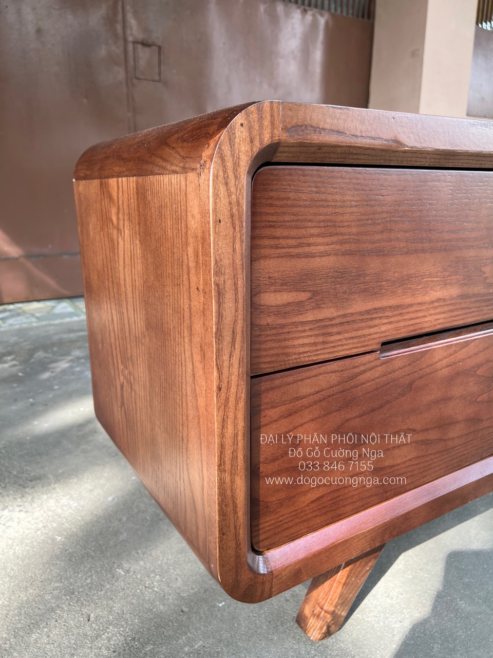 Tổng thể hình dáng chữ nhật với hai bên cạnh hơi vát, gồm 2 tủ nhỏ ở 2 bên kệ, 2 ngăn kéo ở giữa và 1 hộc. Thiết kế kiểu đối xứng, có sự phân chia đồng đều mang lai sự cân bằng tuyệt mỹ. Mỗi một chi tiết đều được cân đo đong đếm tỉ mỉ, chính xác nhằm tôn lên sự độc – lạ.