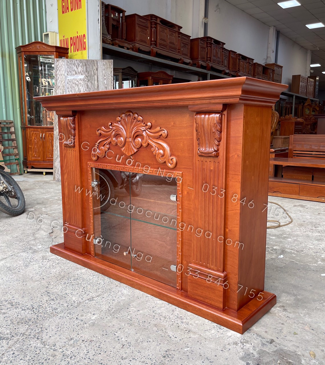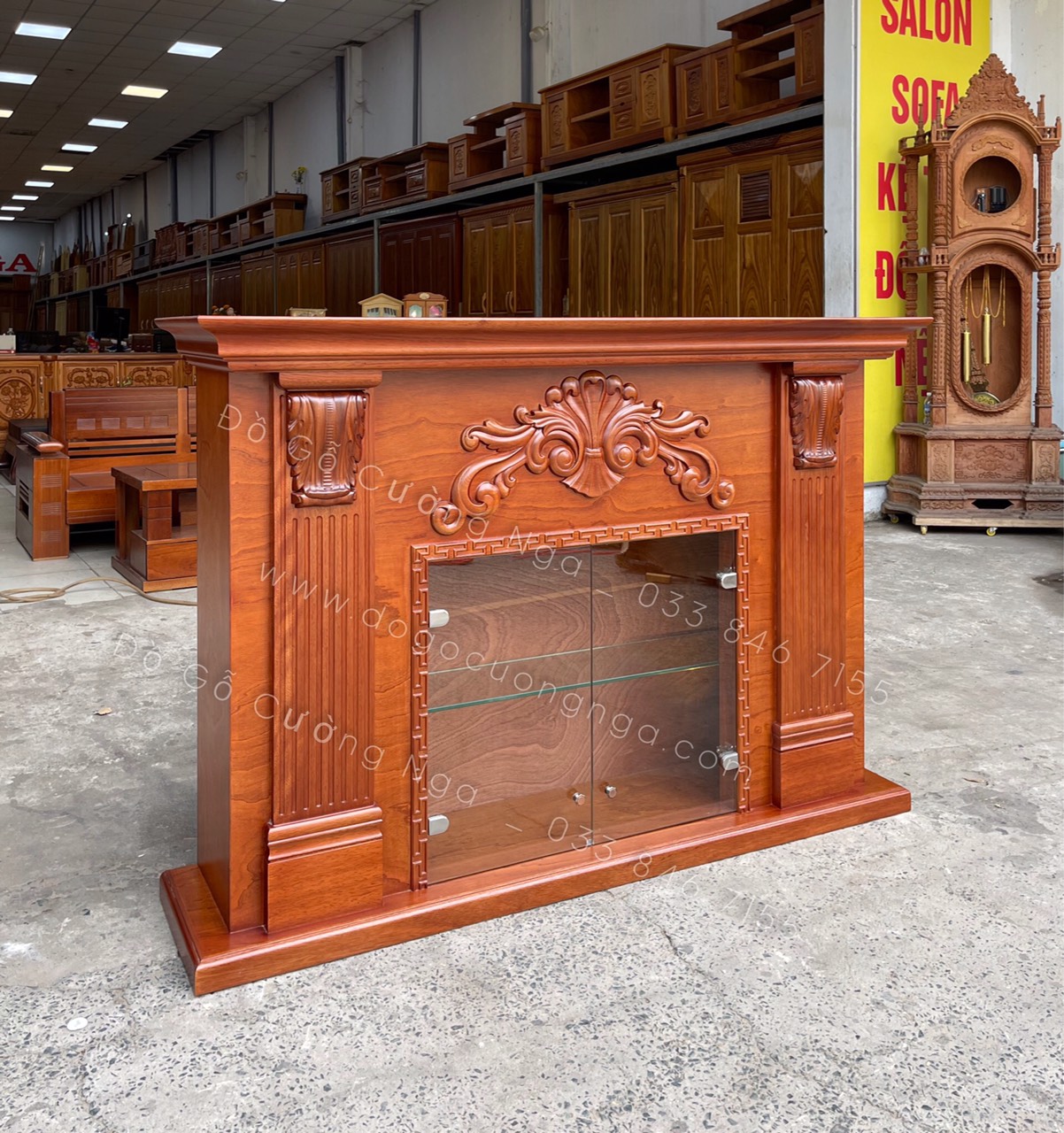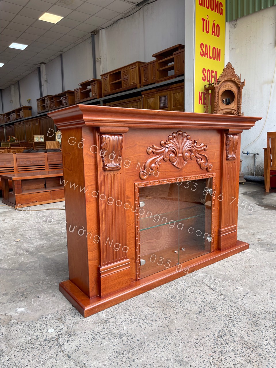 Kệ rượu kết hợp lò sưởi trang trí gỗ xoan đào TG 03