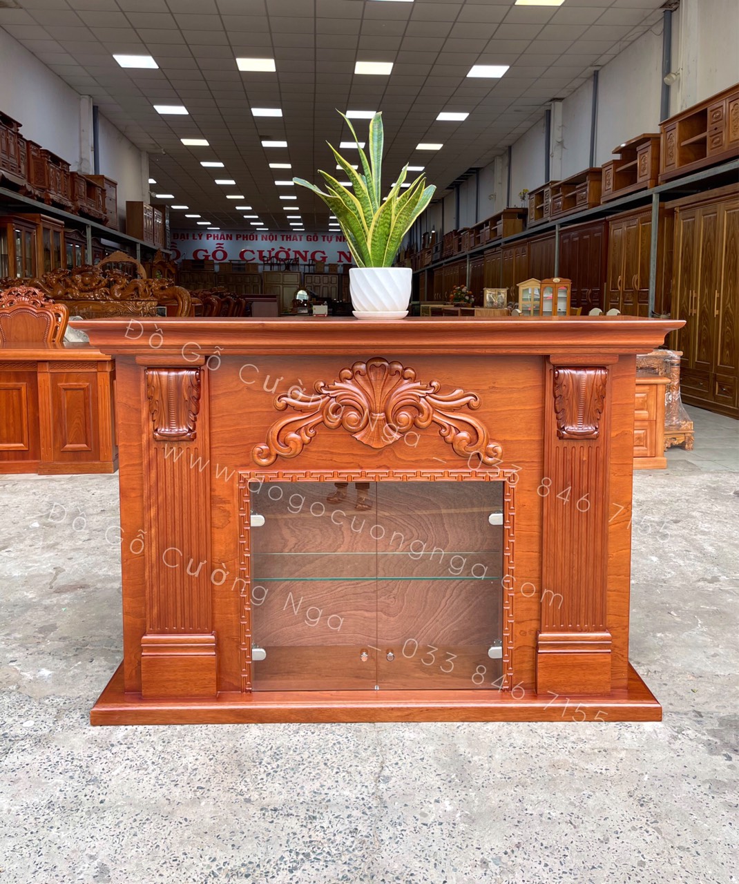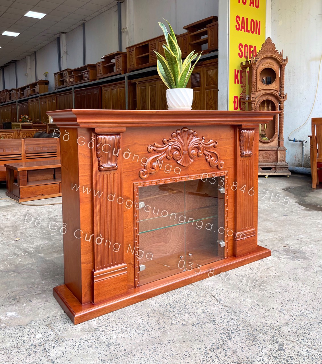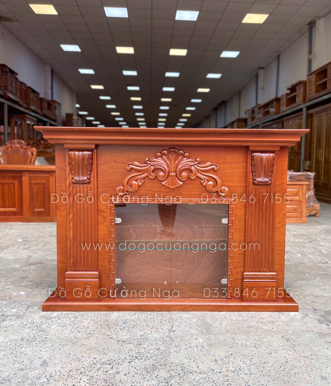 Kệ rượu kết hợp lò sưởi trang trí gỗ xoan đào TG 03
